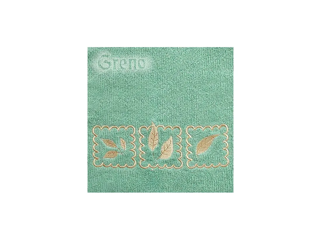 Ręcznik Gracja 70x140 cm w kolorze zielonym firmy Greno to kolekcja ręczników o spokojnych kolorach ozdobionych delikatną aplikacją haftu w postaci beżowo złotych listków . Gramatura ręcznika 420 g/m2.