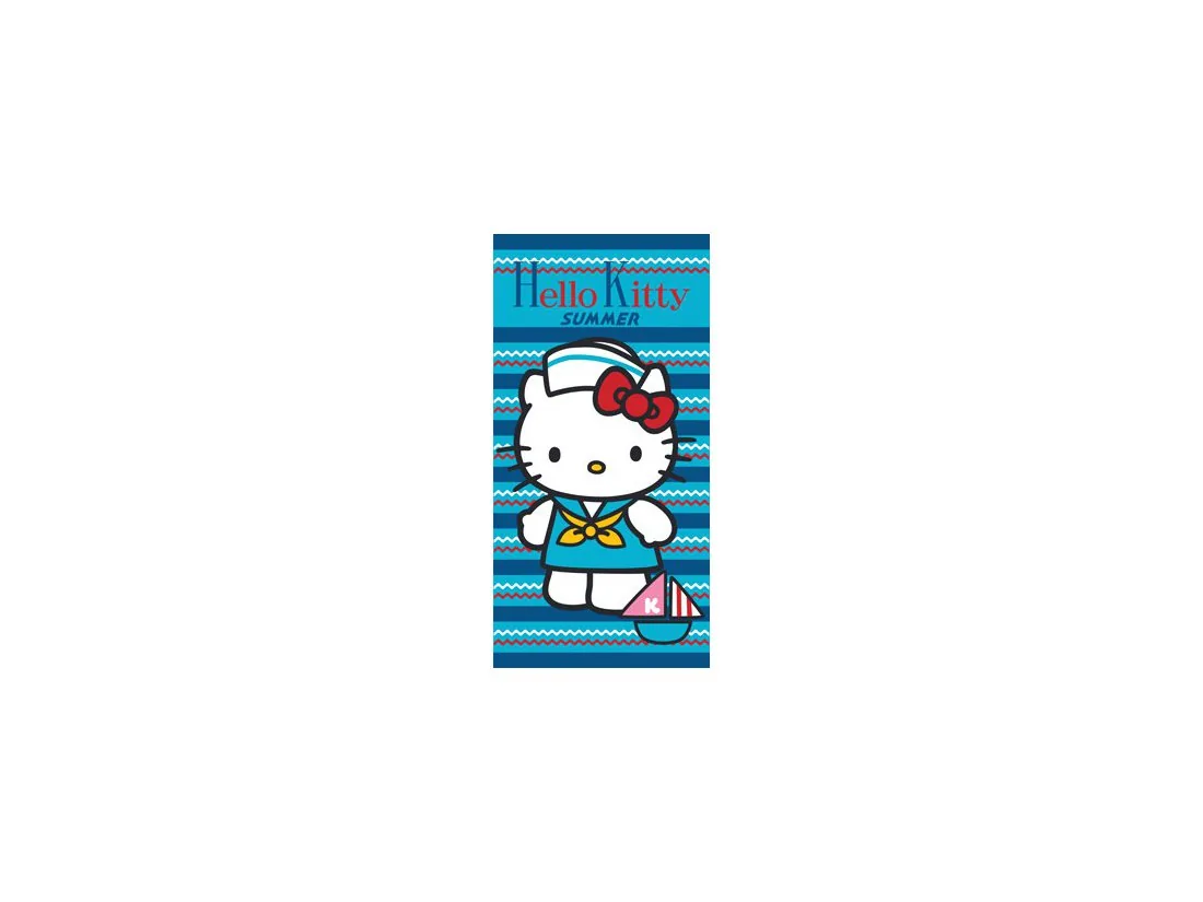Kolorowy, jednostronny ręcznik plażowy HK 01 z uwielbianą przez wszystkie dziewczynki wesołą kotką Kitty to propozycja dla każdej miłośniczki tej ciekawej kreskówki.