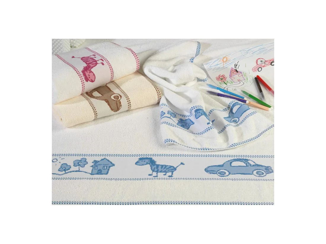 Ręcznik dla dzieci z kolekcji Greno for Kids model Toys Beżowy w rozmiarze 50 x 70 cm w kolorze kremowym, to ręcznik wykonany z wysokogatunkowej przędzy 100 % bawełny o gramaturze 420 g/m2.