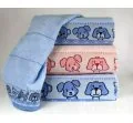 Kolorystyka ręcznika jest w dwóch kolorach niebieskim oraz różowym z aplikacją bordiury z wesołymi misiami.