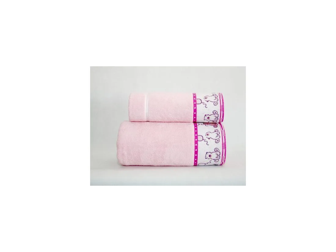 Ręcznik dla dzieci Sweet Bear w rozmiarze 50 x70 cm w kolorze różowym firmy Greno, to ręcznik wykonany z wysokogatunkowej przędzy 100 % bawełny o gramaturze 420 g/m2.