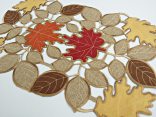 Bieżnik Jesień w rozmiarze 30 x 45 cm w kolorze Capuccino z naszytymi kolorowymi liśćmi.