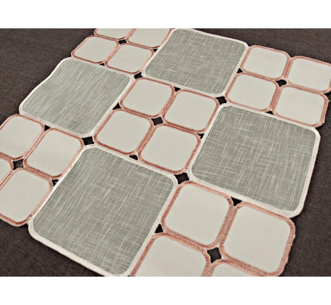 Dzięki prostemu wzornictwu oraz modnemu odcieniowi kremowego, serwetka doskonale komponuje się z różnorodnymi aranżacjami wnętrz, dodając im elegancji i subtelnego uroku. Ciekawa faktura materiału w fantazyjne kwadraty sprawia, że serwetka przyciąga uwagę i stanowi stylowy akcent na stole, ławie lub stolikach kawowych.