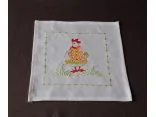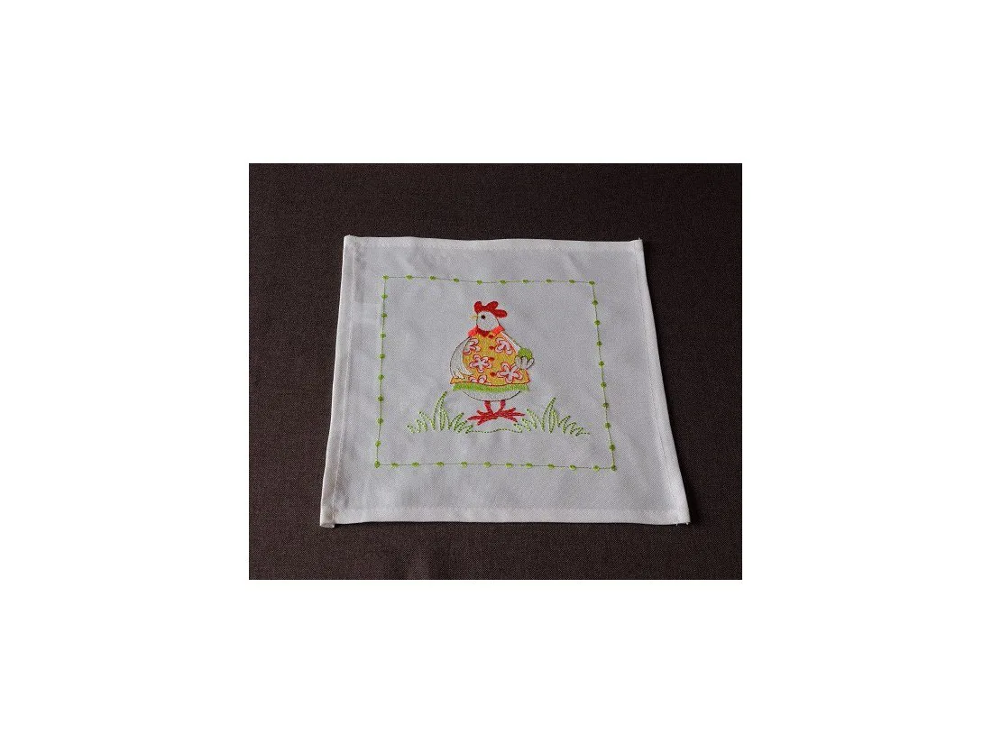 Serwetka Świąteczna Wielkanocna 25x25 cm. Kolorystyka serwetki wielkanocnej w kolorze białym z wyhaftowanym motywem wesołej kurki wspaniale udekoruje każdy stół, ławę podkreślając klimat świąteczny.