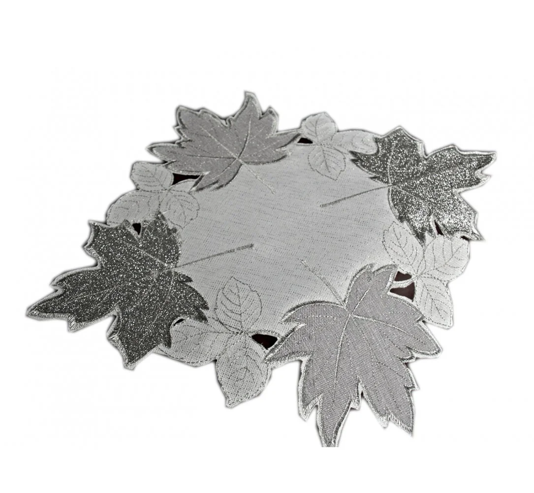 Serwetka haftowana - 30x30 - Srebrne Liście - 18353