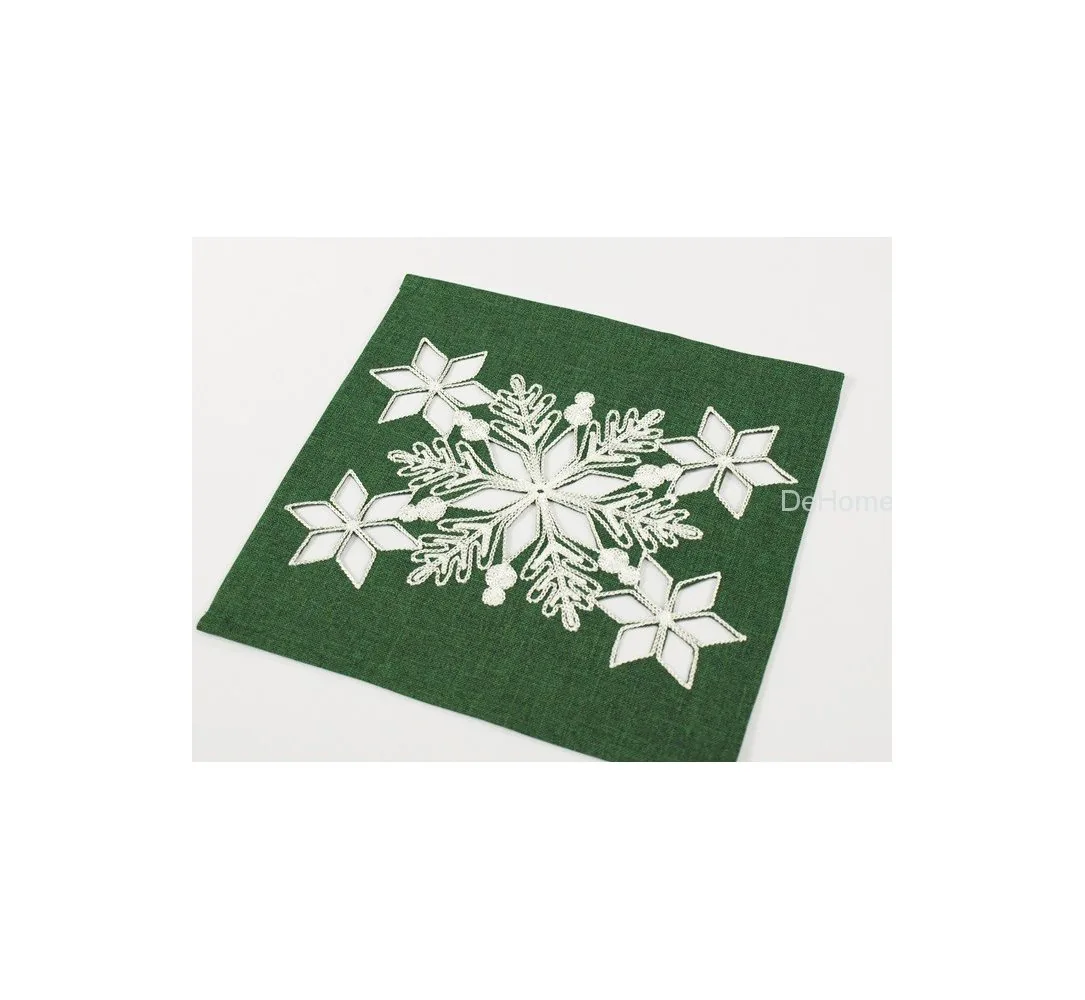 Haftowana serwetka świąteczna w rozmiarze 25x25 cm w kolorze zielonym z białym haftem.