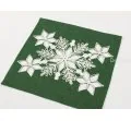 Haftowana serwetka świąteczna w rozmiarze 25x25 cm w kolorze zielonym.