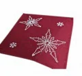 Serwetka świąteczna w rozmiarze 25 x 25 cm w kolorze czerwonym z aplikacja haftowanej białej gwiazdy, została wykonana z tkaniny 100 % poliestrowej. Charakteryzuje się nowoczesnym desingiem, świątecznym nastrojowym wzorem oraz modnym świątecznym kolorem.