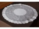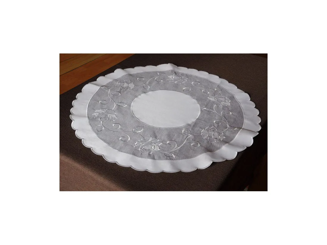 Elegancka haftowana serwetka o średnicy 60 cm w kolorze kremowym.