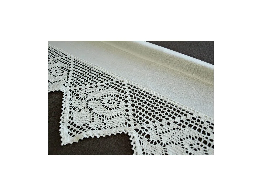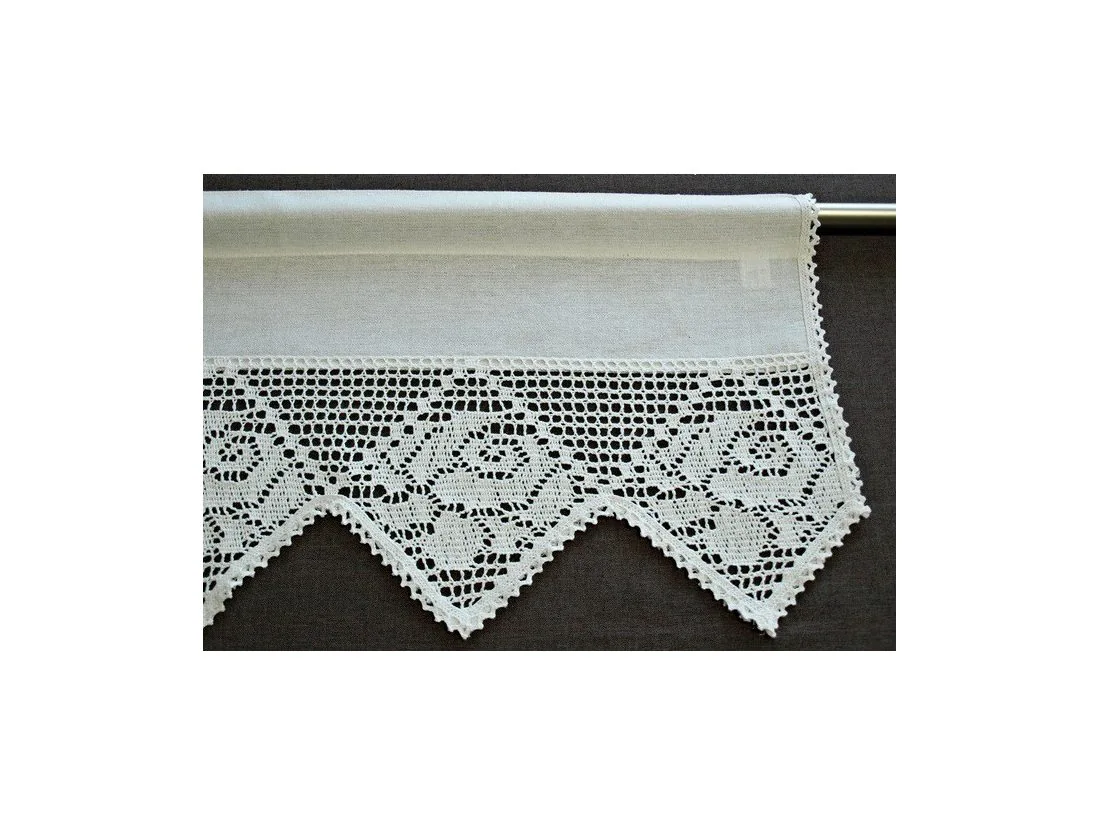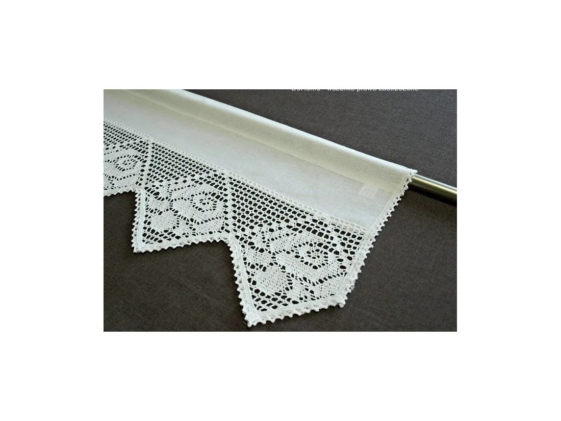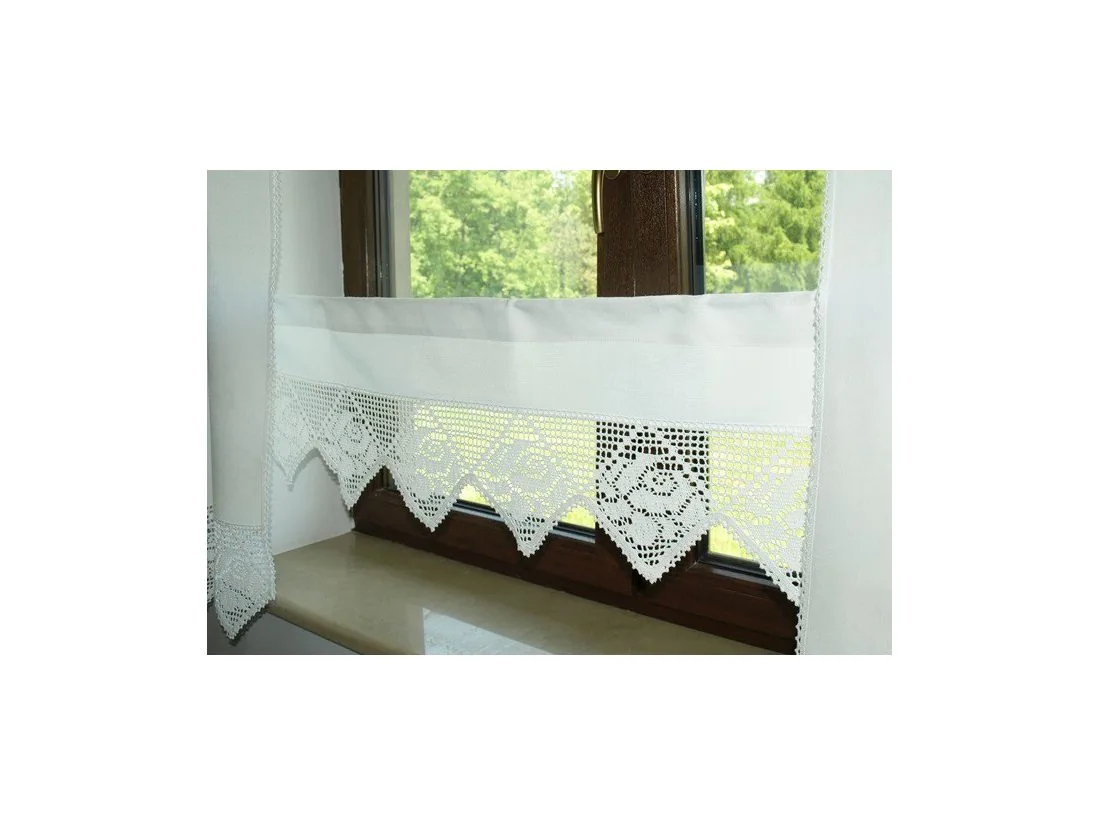 Dekoracyjna zazdrostka w rozmiarze 30 x 100 cm /wys/dł/ w kolorze białym wykończona ozdobną koronką nada niepowtarzalny klimat każdej jadalni, kuchni.