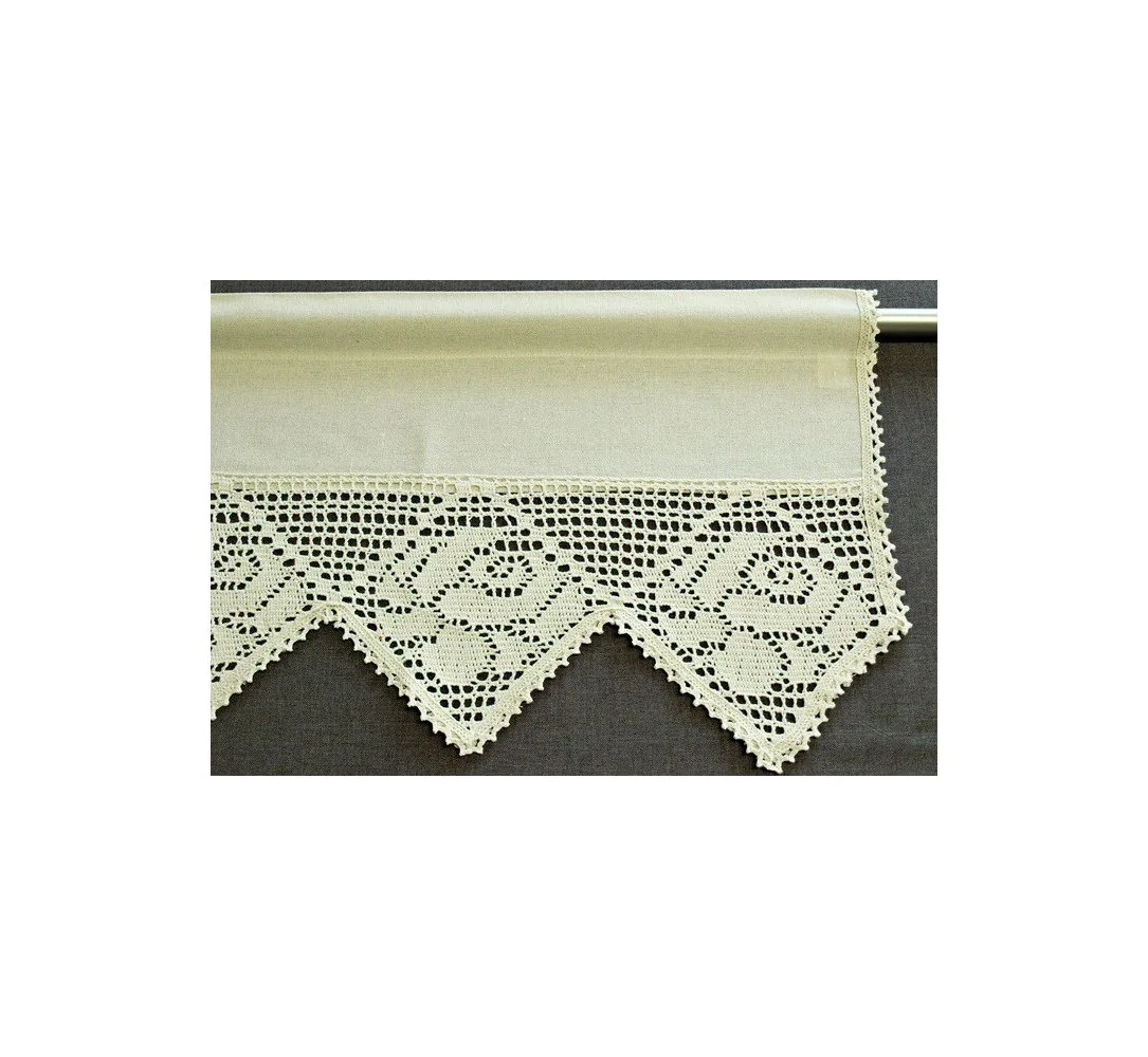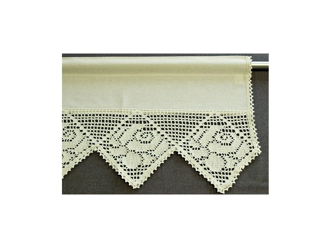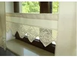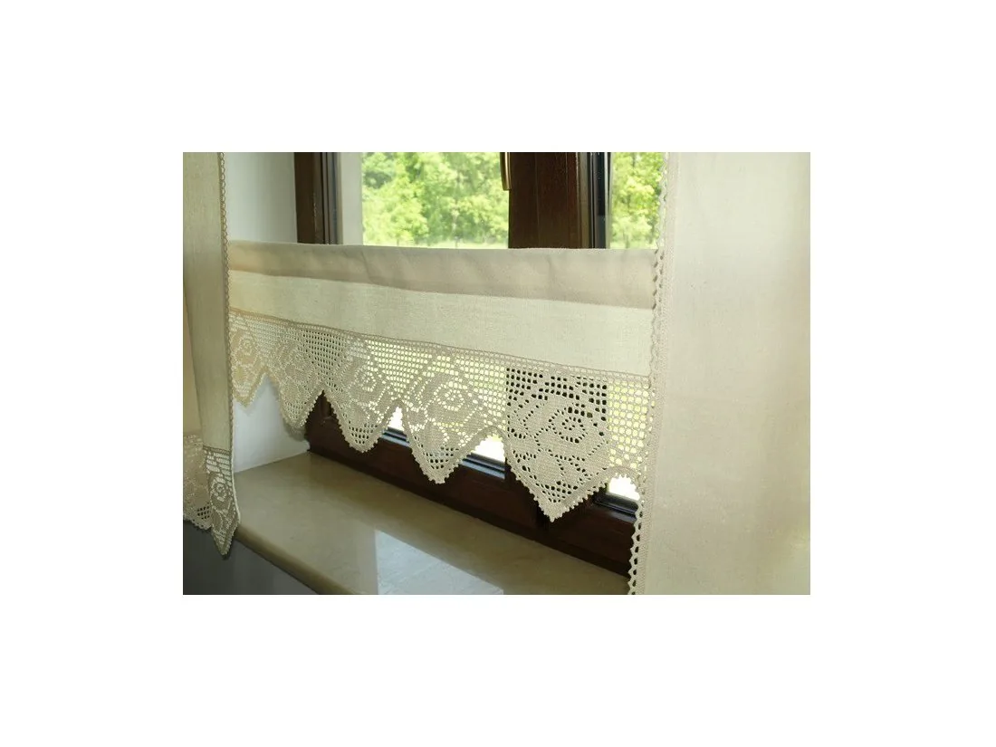 Dekoracyjna zazdrostka w rozmiarze 30 x 200 cm /wys/dł/ w kolorze beżowym wykończona ozdobną koronką nada niepowtarzalny klimat każdej jadalni, kuchni.