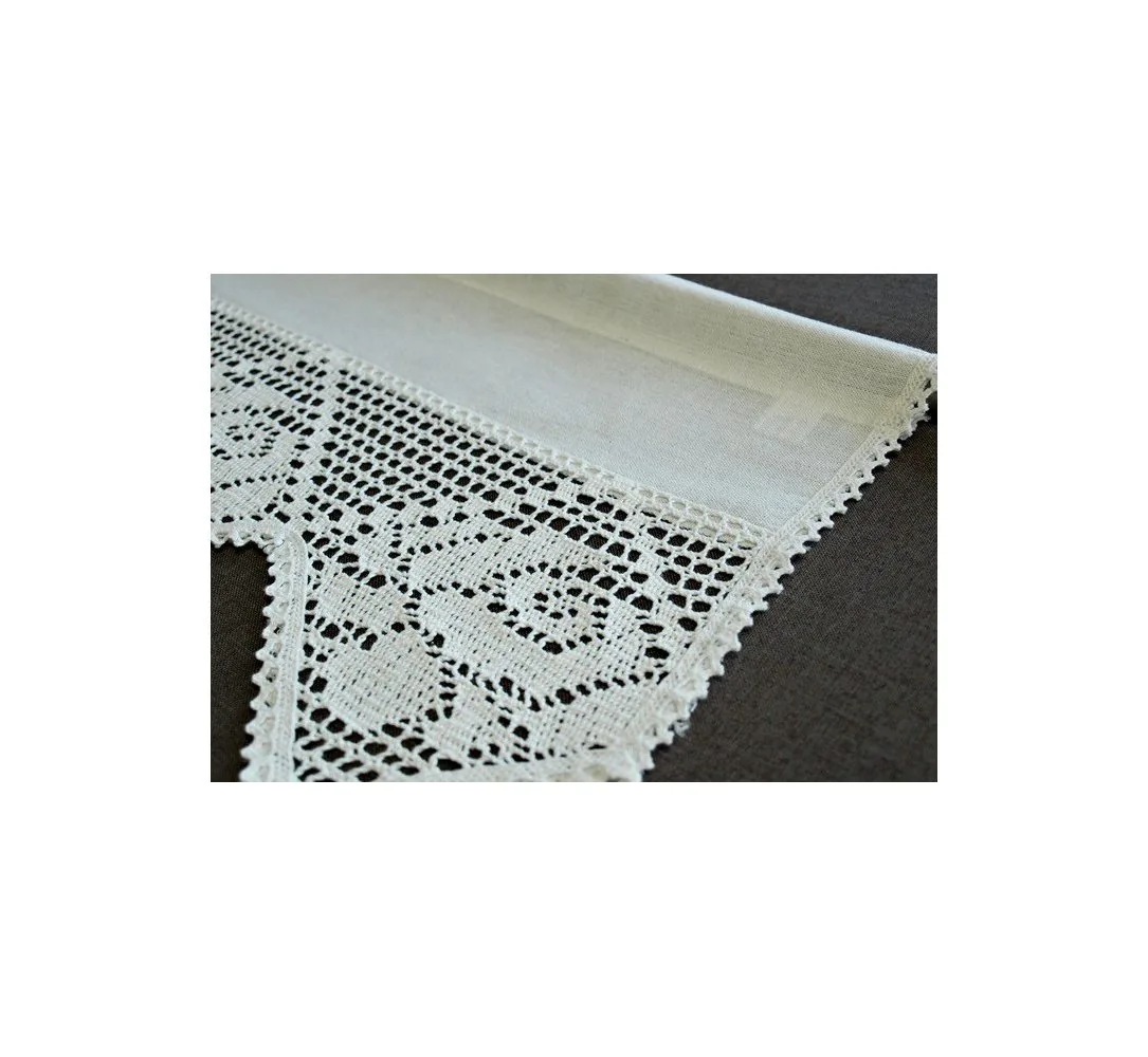 Dekoracyjna zazdrostka w rozmiarze 30 x 70 cm /wys/dł/ w kolorze białym wykończona ozdobną koronką nada niepowtarzalny klimat każdej jadalni, kuchni.