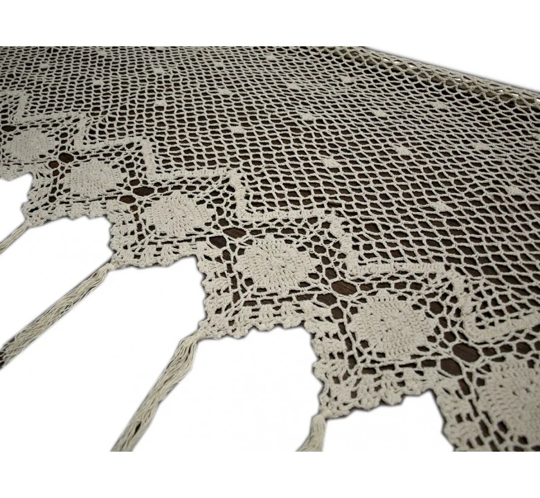 Dekoracyjna zazdrostka ręcznie robiona w rozmiarze 50 x 100 cm /wys/dł/ w kolorze ecru nada niepowtarzalny klimat każdej jadalni, kuchni. Wysokość firanki mierzona jest do szpica zazdrostki, dolana dekoracja tj frędzle można bezinwazyjnie wyciągnąć nadając inny wizerunek zazdrostki.