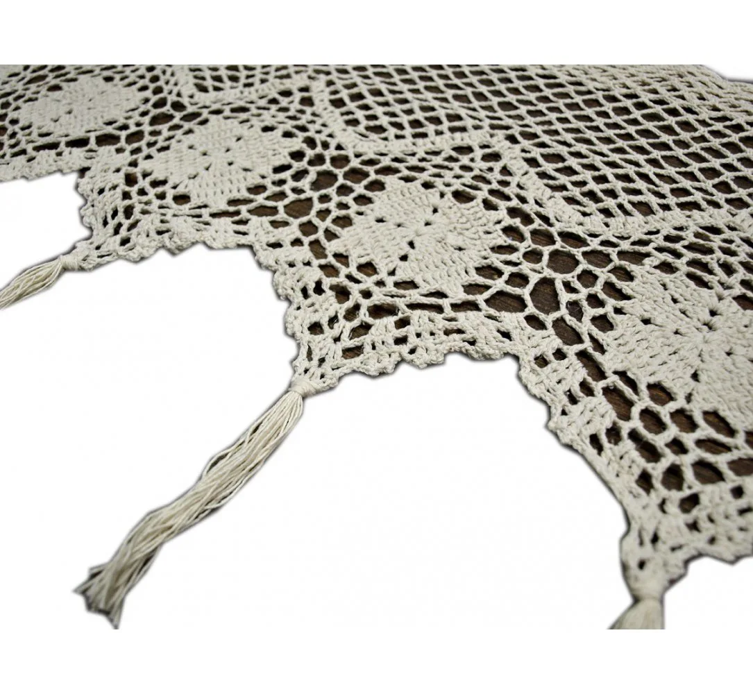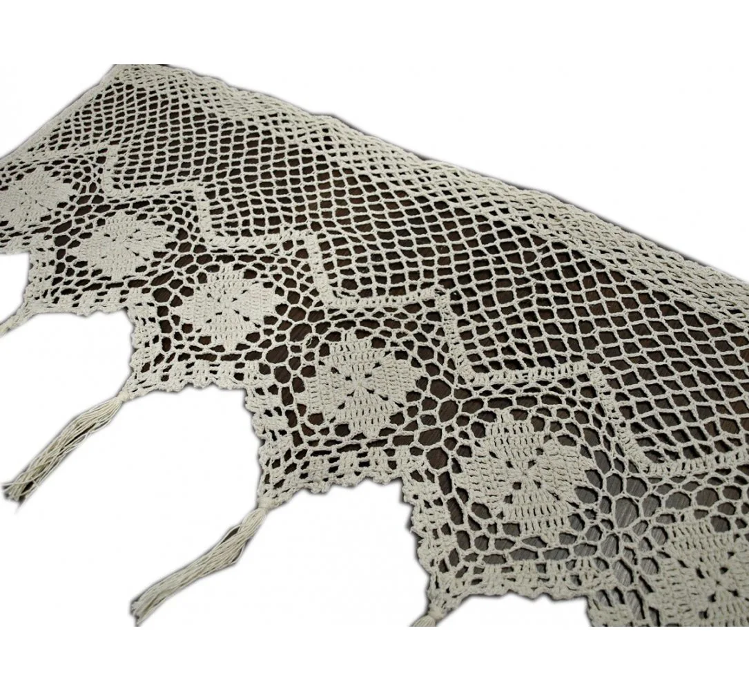 Dekoracyjna zazdrostka ręcznie robiona w rozmiarze 30 x 150 cm /wys/dł/ w kolorze ecru nada niepowtarzalny klimat każdej jadalni, kuchni. Wysokość firanki mierzona jest do szpica zazdrostki, dolana dekoracja tj frędzle można bezinwazyjnie wyciągnąć nadając inny wizerunek zazdrostki.
