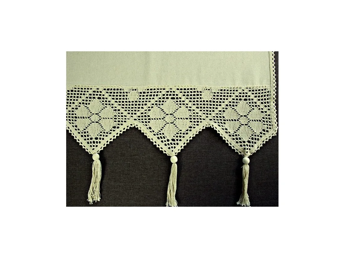 Dekoracyjna zazdrostka w rozmiarze 50 x 150 cm /wys/dł/ w kolorze beżowym wykończona ozdobną koronką nada niepowtarzalny klimat każdej jadalni, kuchni.