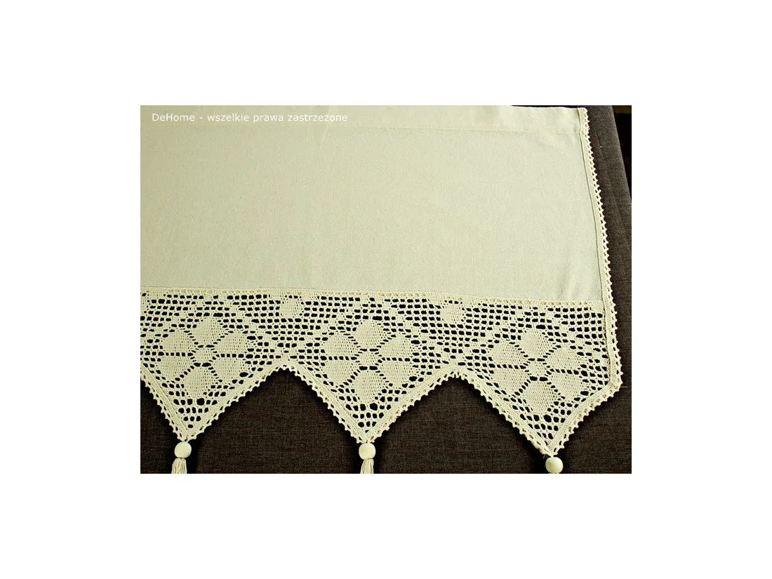 Dekoracyjna zazdrostka w rozmiarze 50 x 200 cm /wys/dł/ w kolorze beżowym wykończona ozdobną koronką nada niepowtarzalny klimat każdej jadalni, kuchni.