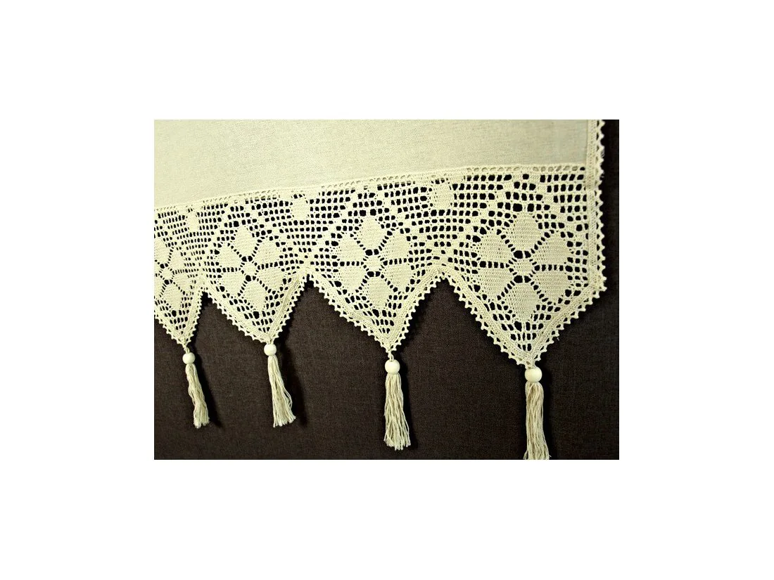 Dekoracyjna zazdrostka w rozmiarze 50 x 70 cm /wys/dł/ w kolorze beżowym wykończona ozdobną koronką nada niepowtarzalny klimat każdej jadalni, kuchni.