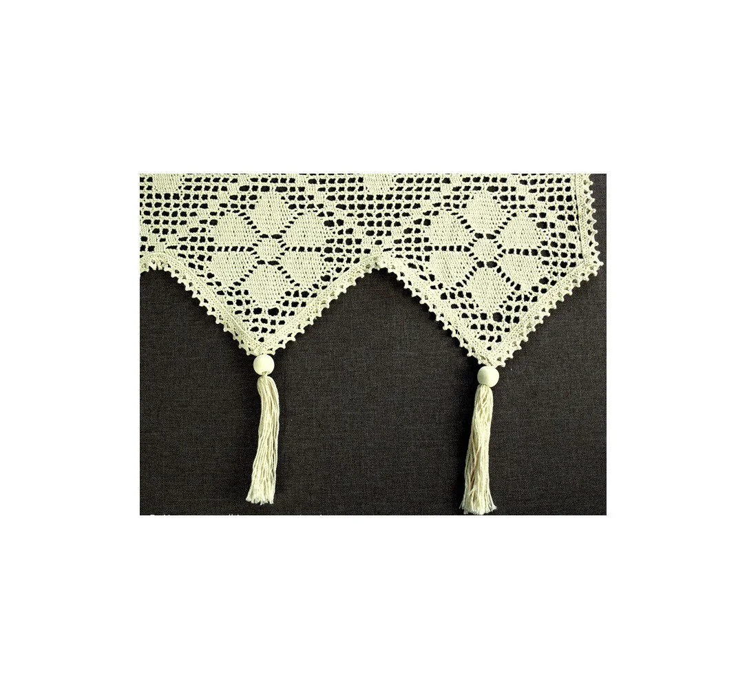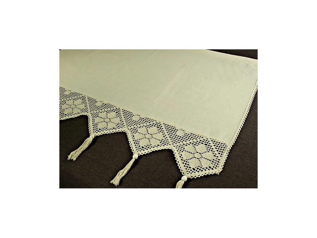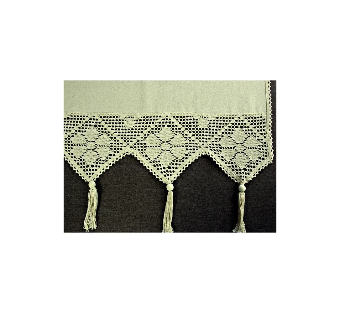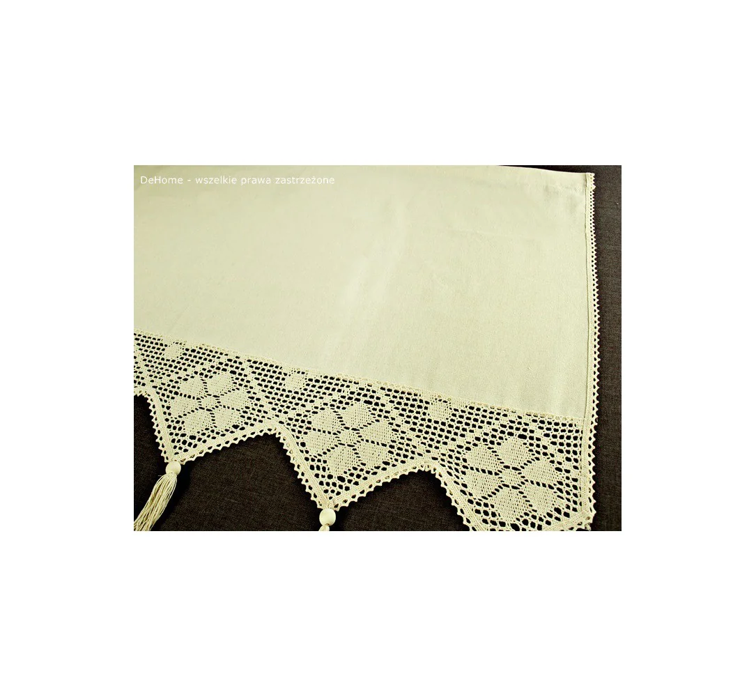 Dekoracyjna zazdrostka w rozmiarze 70 x 100 cm /wys/dł/ w kolorze beżowym wykończona ozdobną koronką nada niepowtarzalny klimat każdej jadalni, kuchni.