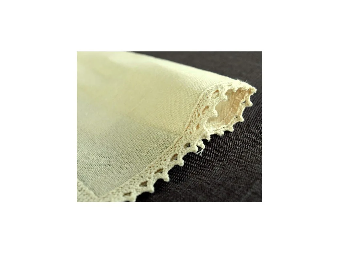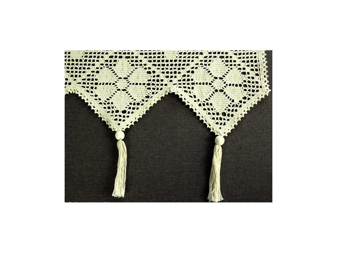 Dekoracyjna zazdrostka w rozmiarze 70 x 200 cm /wys/dł/ w kolorze beżowym wykończona ozdobną koronką nada niepowtarzalny klimat każdej jadalni, kuchni.