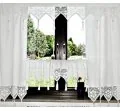 Do dekoracji okna z kolekcji Firan Village są dostępne zazdrostki, lambrekiny oraz zasłony.