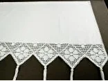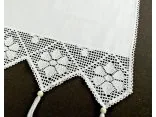 Dekoracyjna zazdrostka w rozmiarze 70 x 200 cm /wys/dł/ w kolorze białym wykończona ozdobną koronką nada niepowtarzalny klimat każdej jadalni, kuchni.