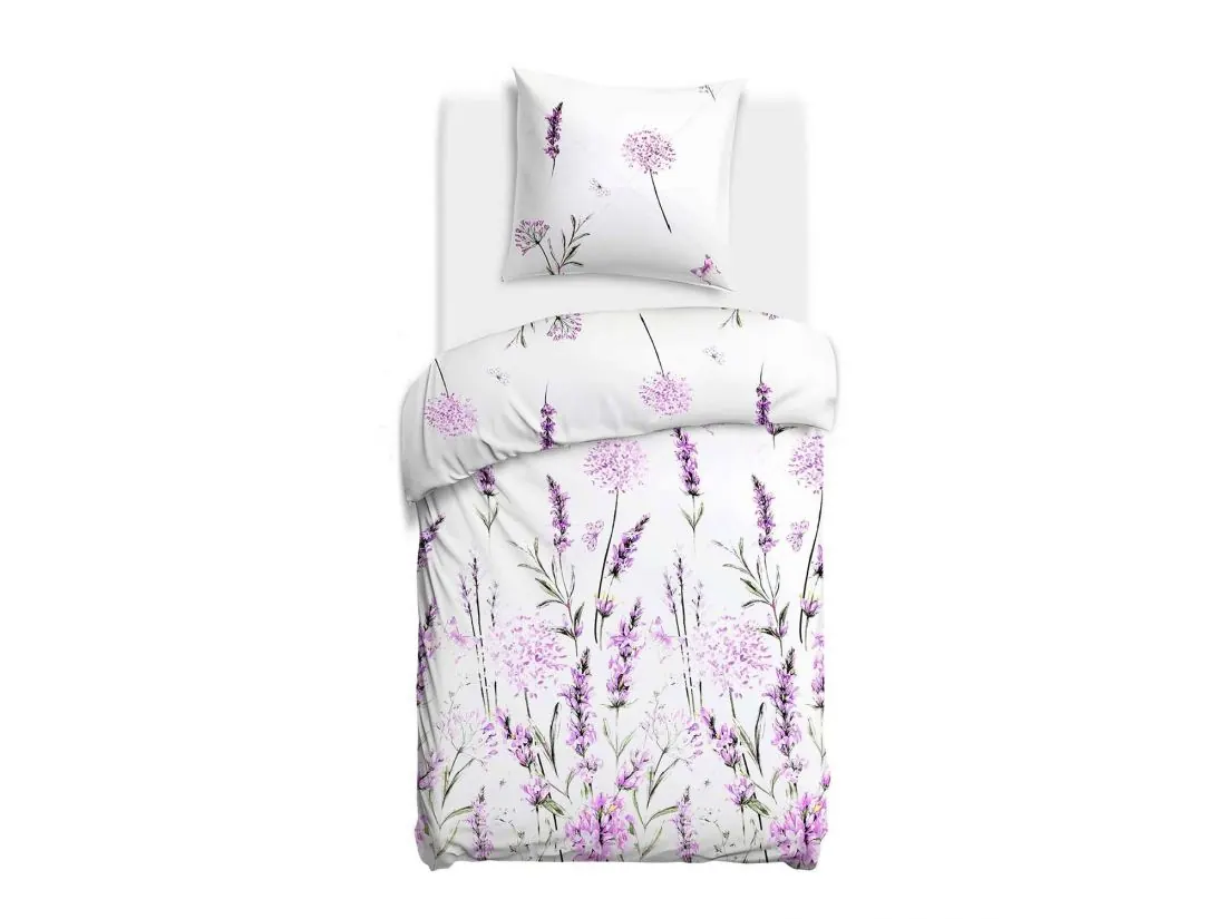 Bawełniana Pościel 140x200 – Delikatna Lawenda Na Bieli