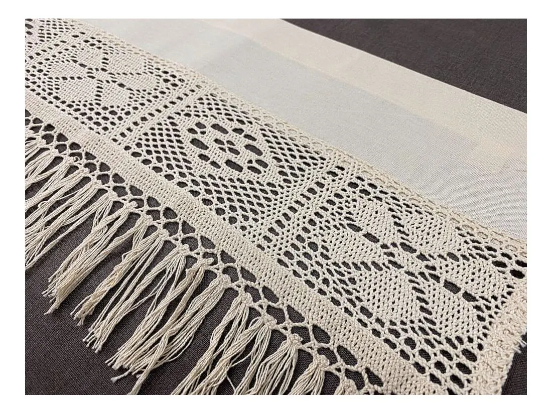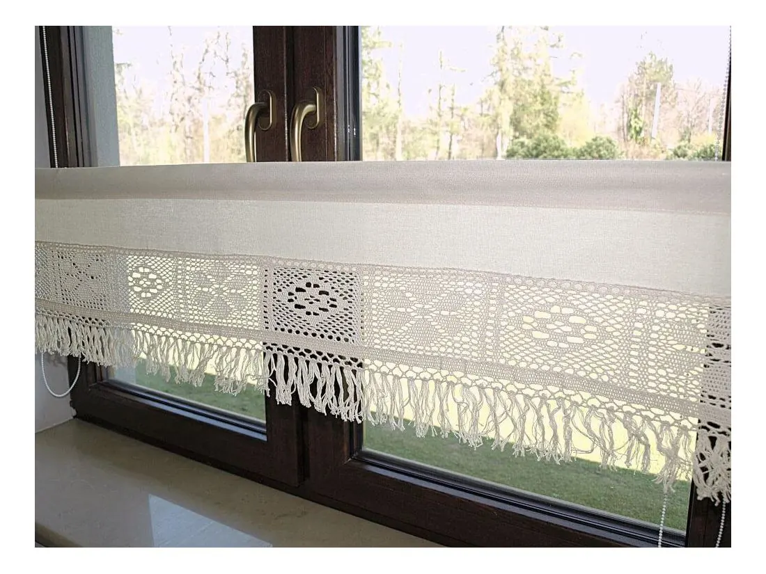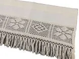- Ozdobna koronka i frędzle: Dół zazdrostki wieńczy **misterna koronka oraz stylowe frędzle**, które nadają całości rustykalnego, a zarazem luksusowego sznytu w modnym stylu boho.
