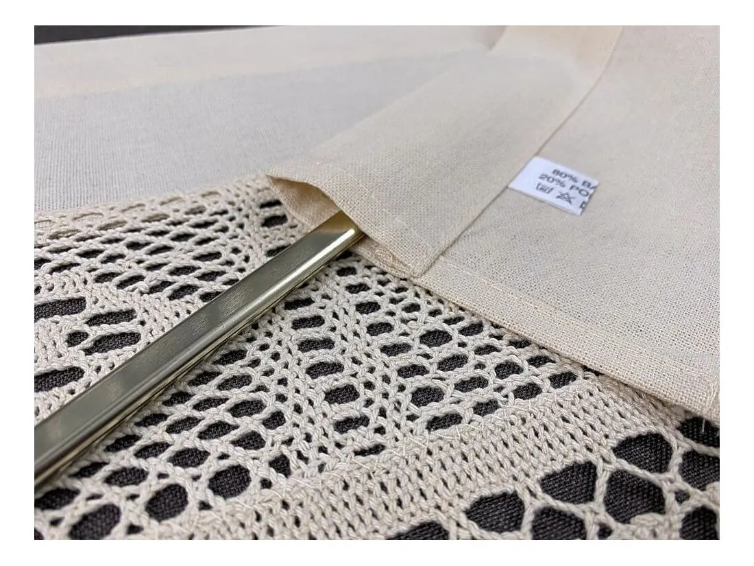 - Praktyczny tunel na karnisz: Firanka posiada fabrycznie przygotowany otwór na karnisz o **szerokości 5 cm**, co pozwala na błyskawiczny i estetyczny montaż bezpośrednio na pręcie zazdrostkowym.