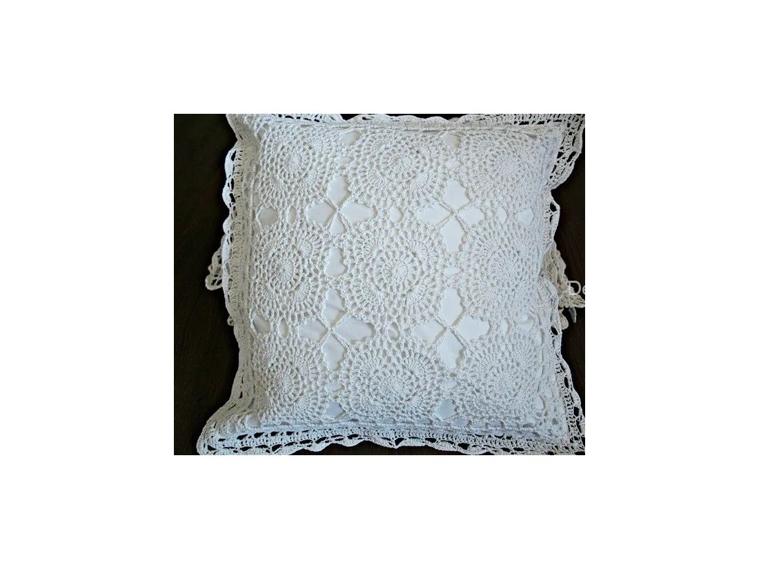 Ta elegancka, ręcznie robiona poszewka szydełkowa w kolorze białym to wyjątkowy dodatek do wnętrza. Idealna jako poszewka dekoracyjna na kanapę, fotel czy łóżko, łączy tradycyjne rękodzieło z nowoczesnym stylem, nadając przytulny charakter każdemu pomieszczeniu.