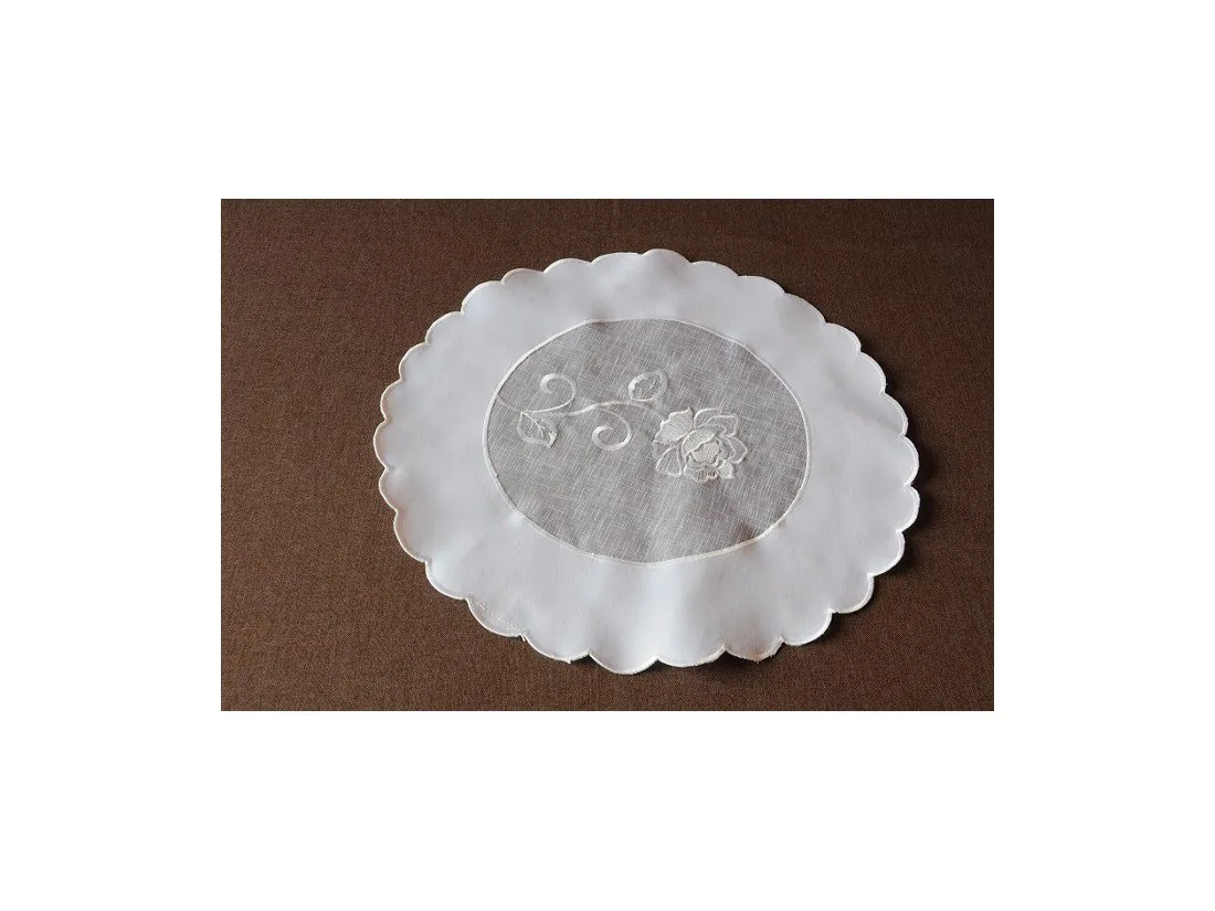 Biała Serwetka Haftowana 40 cm z Woalem Dekoracja Stołu i do Koszyczka