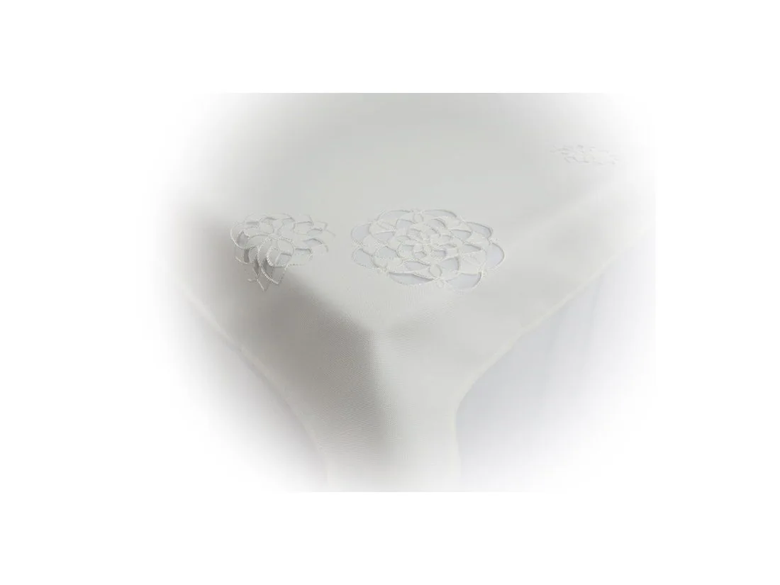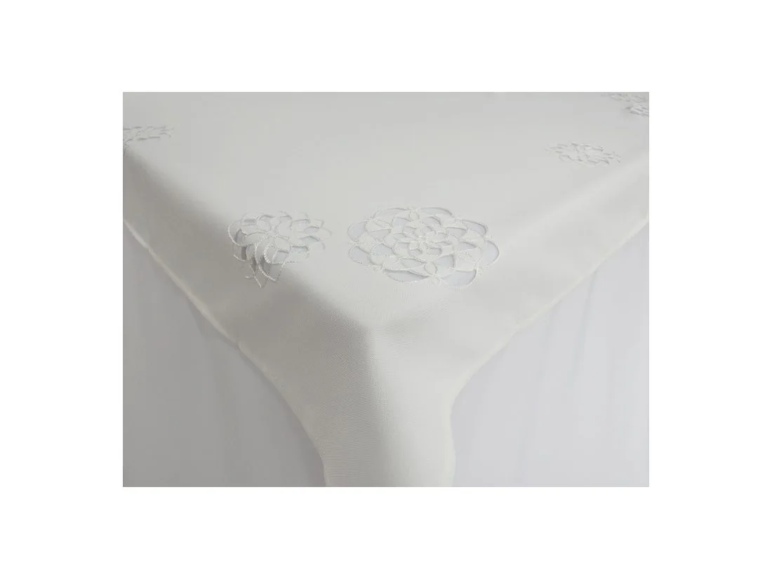 Biały obrus haftowany 130x174 – elegancki obrus na stół z motywem kwiatowym