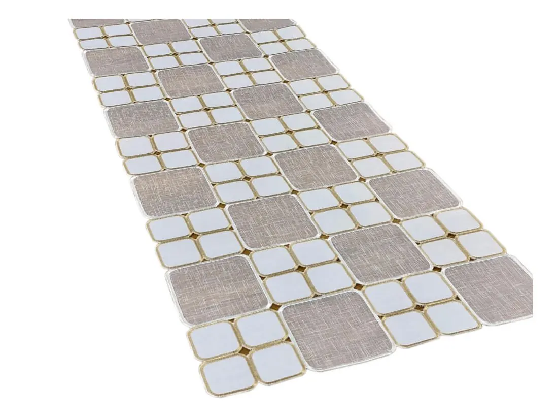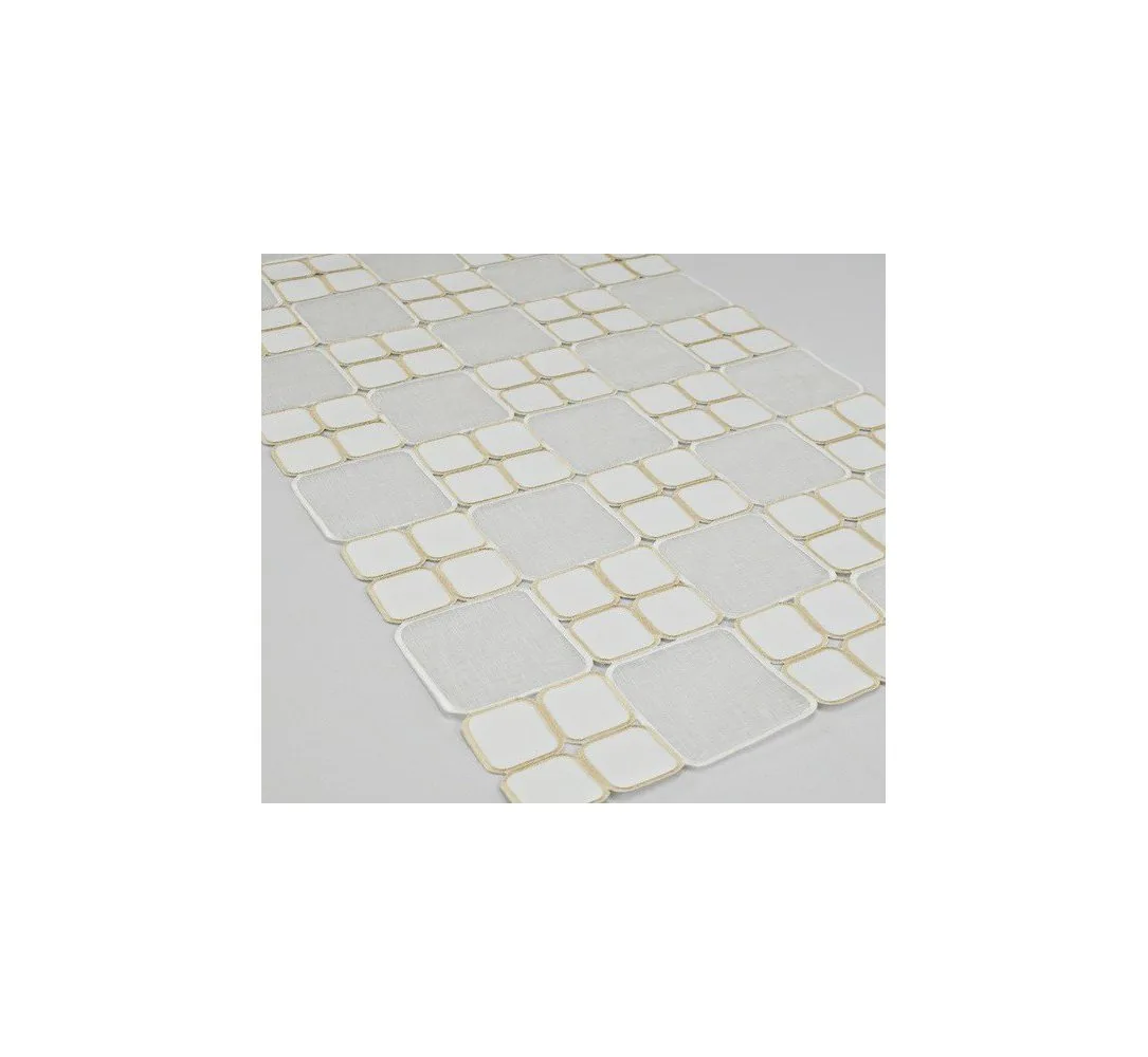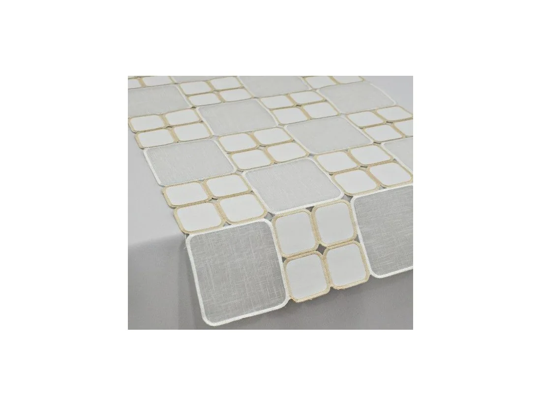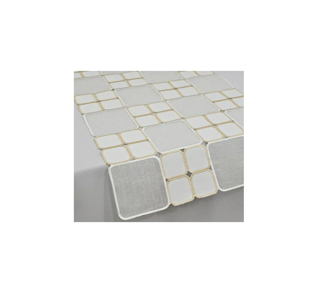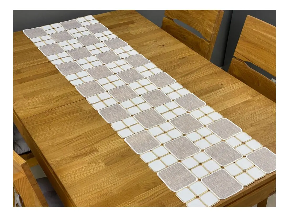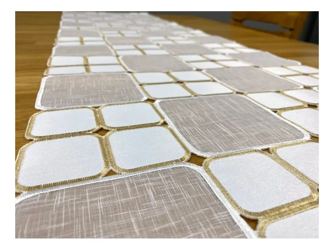 Odkryj wyjątkową nakładkę haftowaną na stół 40x140 cm, która łączy w sobie styl i funkcjonalność. Ten dekoracyjny bieżnik w kolorze biało-kremowym tworzy efektowny mozaikowy wzór, subtelnie podkreślając charakter jadalni, salonu lub kuchni. Idealny zarówno do codziennego użytku, jak i na wyjątkowe okazje.