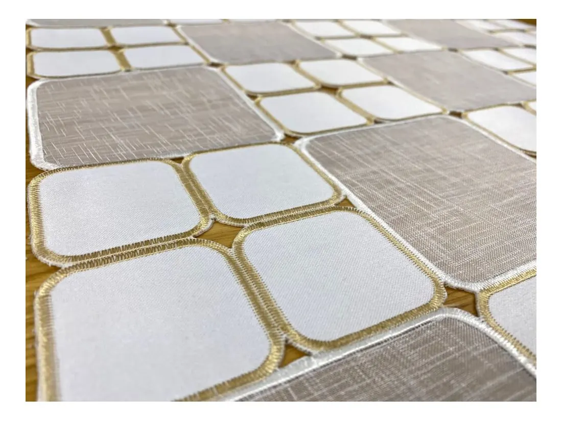 Bieżnik 85x85 Kremowy Haftowany w Kwadraty – Nowoczesny Styl