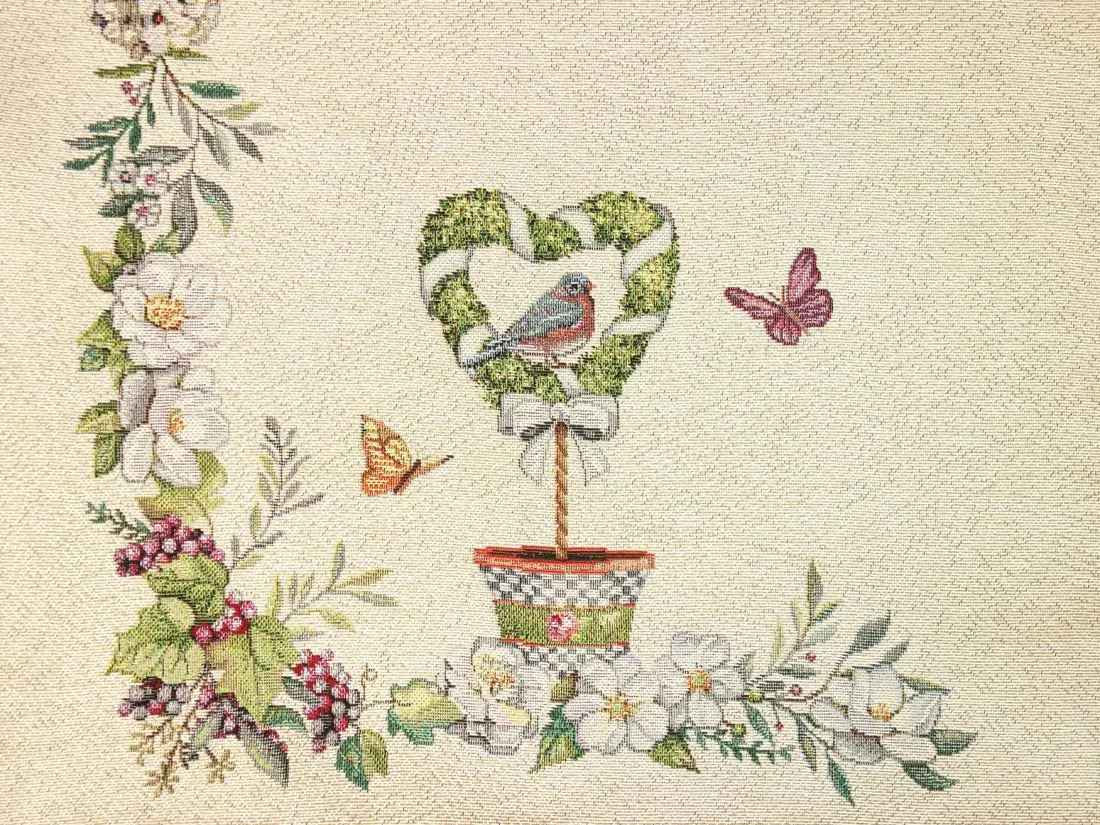 Dekoracyjny bieżnik gobelinowy w rozmiarze 40x100 cm, został wykonany z tkaniny hiszpańskiej 25% bawełna, 70 % poliester, 5% poliakryl - tkanina tkana żakardowa z kwiatowym wzorem idealnie podkreśli klimat każdej kuchni idealnie wkomponuje się w aranżacje salonu. Nakładka w kształcie prostokątnym na krótszym boku delikatny kwiatowy wzór nadający niepowtarzalny urok nakładki.Niepowtarzalne wzornictwo gobelinu podkreśli wystrój każdego wnętrza gdzie bieżnik zostanie rozłożony. Jest to niezastąpiony element do salonu, kuchni, który może odmienić każde wnętrze oraz magicznie podkreślić jego wystrój. Wzornictwo nawiązuje do tradycyjnych gobelinów które dawniej zdobiły ściany w domach. Zastosowana tkanina jest tkana, gruba, nie gniecie. Różnorodność wzorów gobelinowych zadowoli każdego kto pragnie aby w jego pomieszczeniu zagościł niepowtarzalny magiczny sielski klimat. Nakładka gobelinowa może być idealnym rozwiązaniem aby odmienić wnętrze jak również niezastąpionym pomysłem na prezent dla bliskiej osoby.