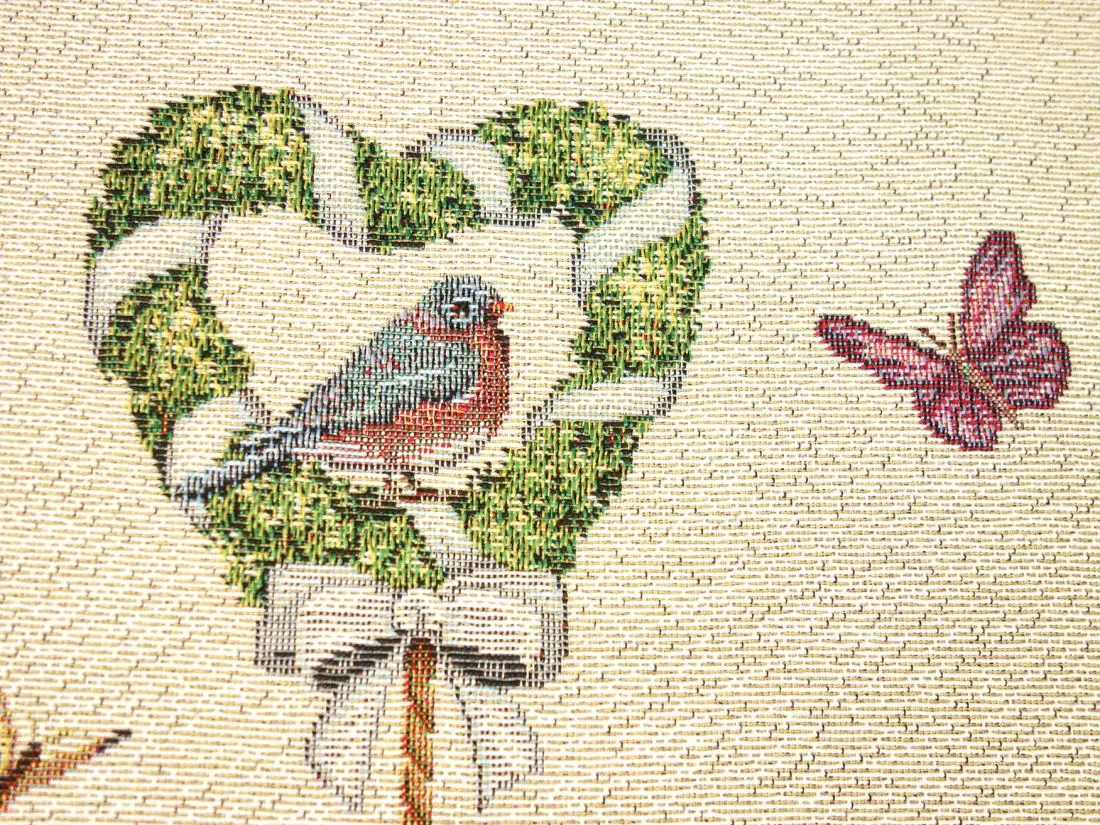 Dekoracyjny bieżnik gobelinowy w rozmiarze 45x140 cm, został wykonany z tkaniny hiszpańskiej 25% bawełna, 70 % poliester, 5% poliakryl - tkanina tkana żakardowa z kwiatowym wzorem idealnie podkreśli klimat każdej kuchni idealnie wkomponuje się w aranżacje salonu. Nakładka w kształcie prostokątnym, na krótszym boku bieżnika jest delikatny kwiatowy wzór nadający niepowtarzalny urok nakładki.Niepowtarzalne wzornictwo gobelinu podkreśli wystrój każdego wnętrza gdzie bieżnik zostanie rozłożony. Jest to niezastąpiony element do salonu, kuchni, który może odmienić każde wnętrze oraz magicznie podkreślić jego wystrój. Wzornictwo nawiązuje do tradycyjnych gobelinów które dawniej zdobiły ściany w domach. Zastosowana tkanina jest tkana, gruba, nie gniecie. Różnorodność wzorów gobelinowych zadowoli każdego kto pragnie aby w jego pomieszczeniu zagościł niepowtarzalny magiczny sielski klimat. Nakładka gobelinowa może być idealnym rozwiązaniem aby odmienić wnętrze jak również niezastąpionym pomysłem na prezent dla bliskiej osoby.