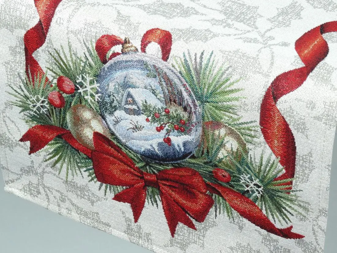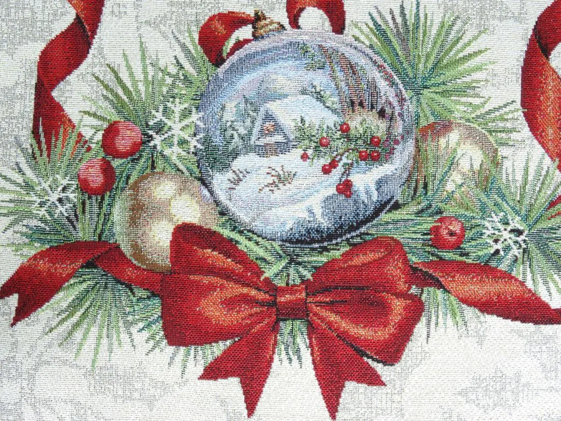 Bieżnik gobelinowy świąteczny 40x100 cm bańki z kokardką wz 204 SlodkieSny