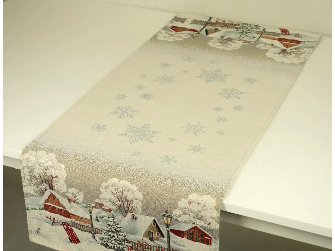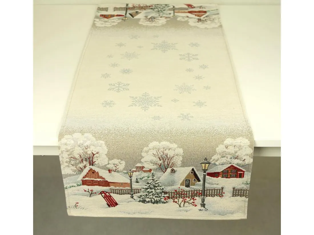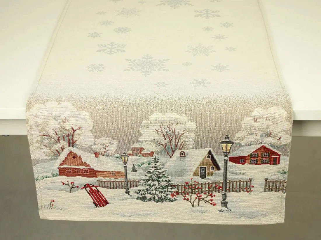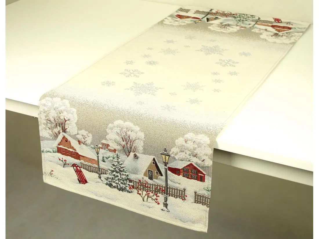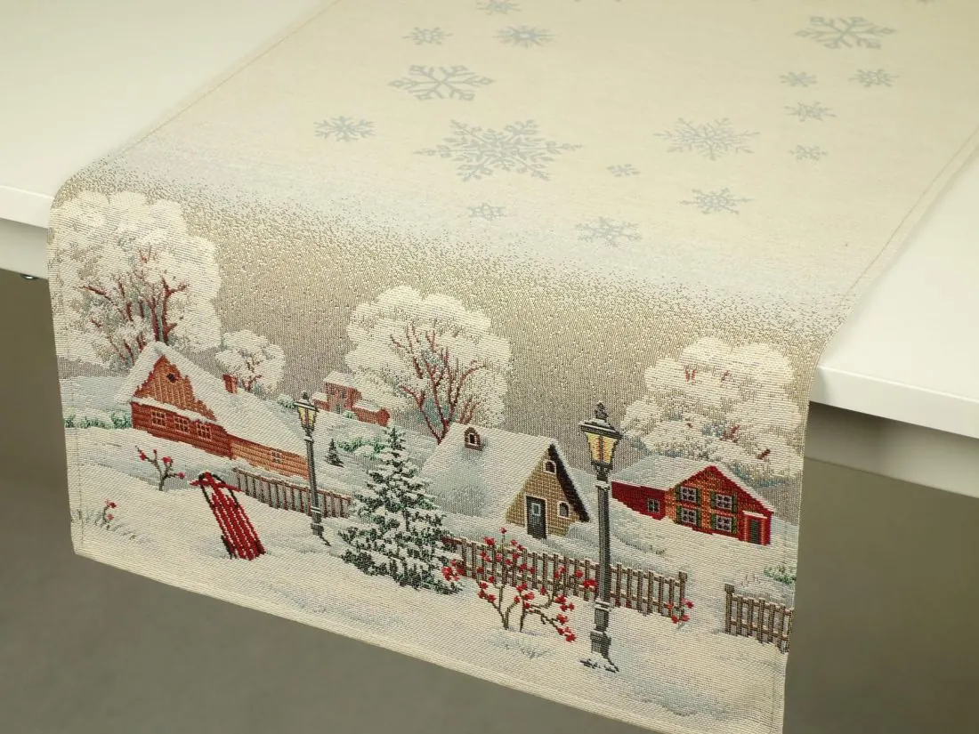 Bieżnik gobelinowy świąteczny 40x100 cm chatki, jeleń, sarenka zimą nr sw 287 SlodkieSny