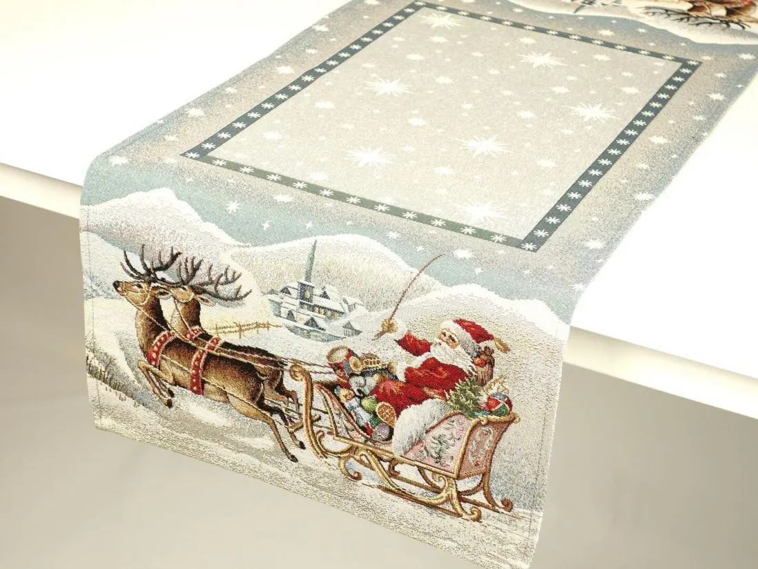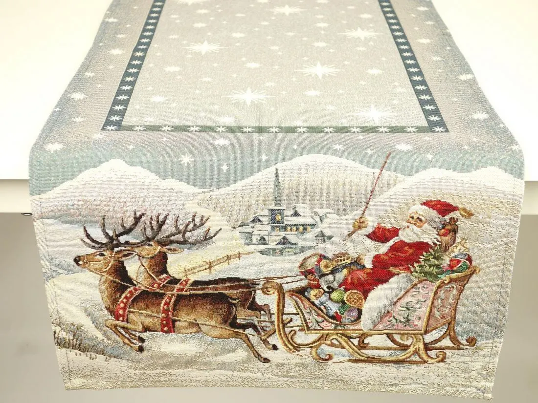 Bieżnik gobelinowy świąteczny 40x100 cm mikołaj w saniach wz. 285 SlodkieSny