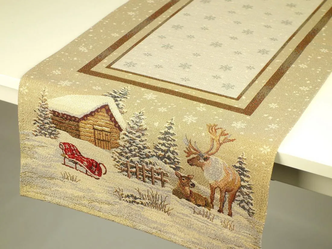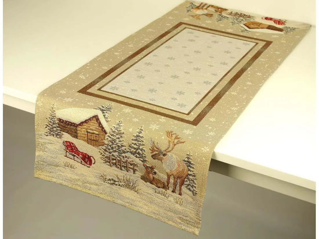 Bieżnik gobelinowy świąteczny 40x100 cm renifery zimą nr. 274 SlodkieSny