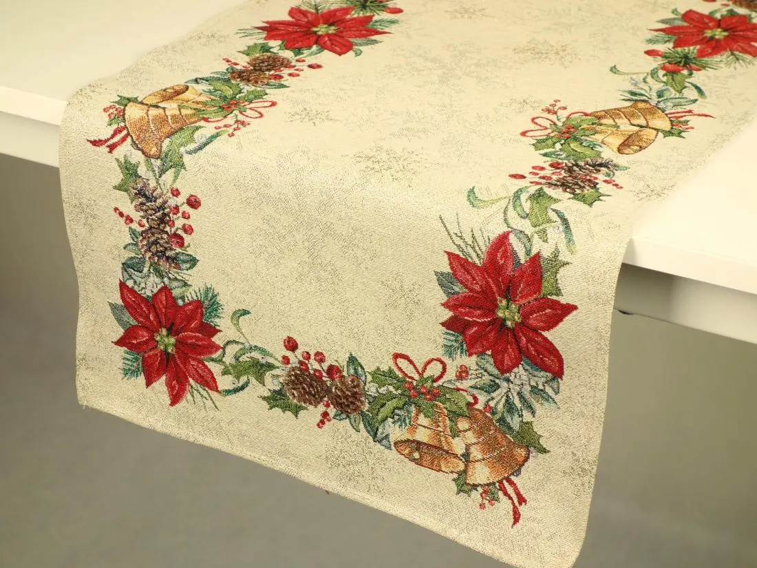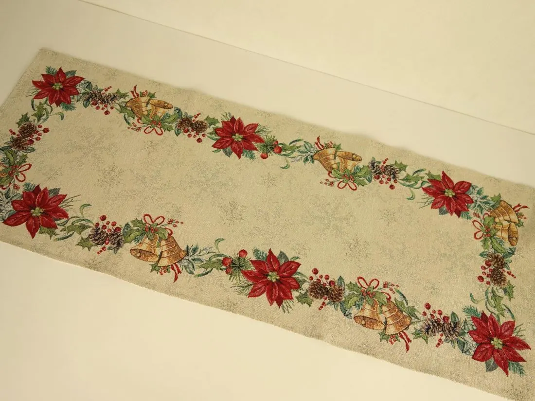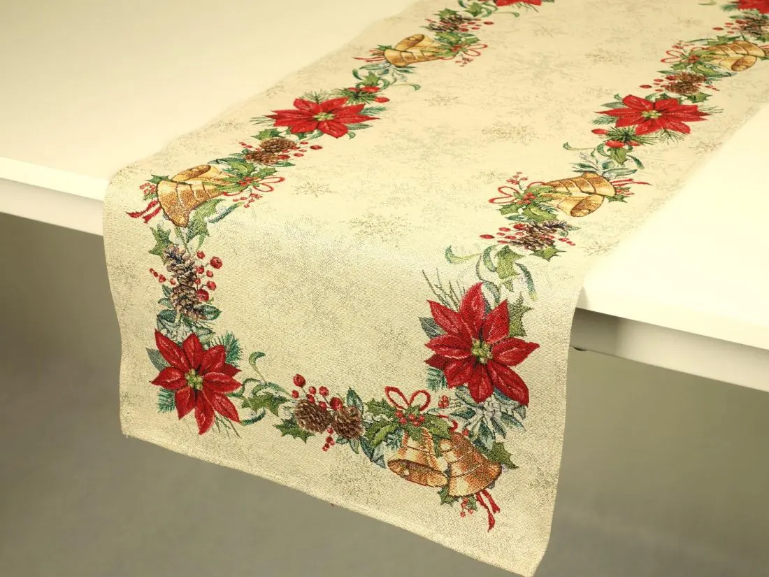 Bieżnik gobelinowy świąteczny 40x100 cm stroik, dzwoneczki wz 296 SlodkieSny srebrna nitka