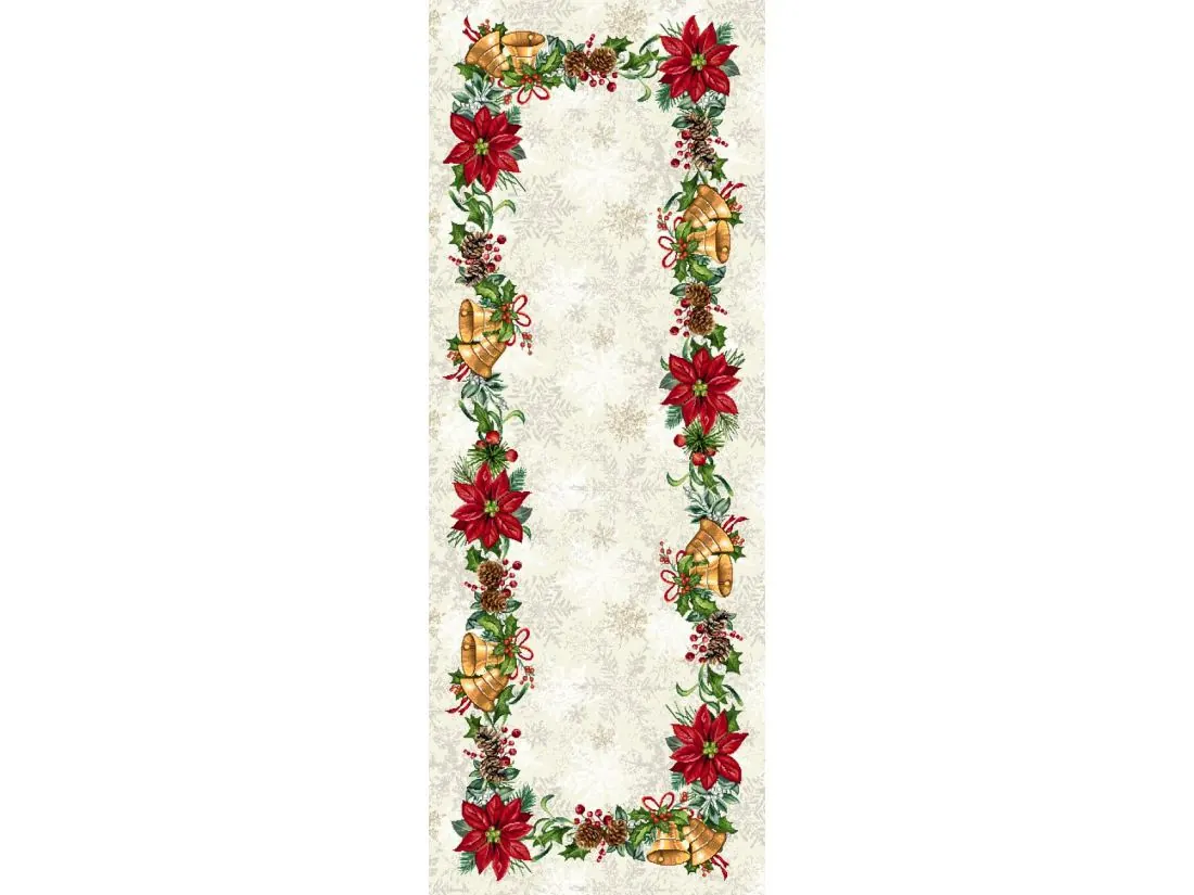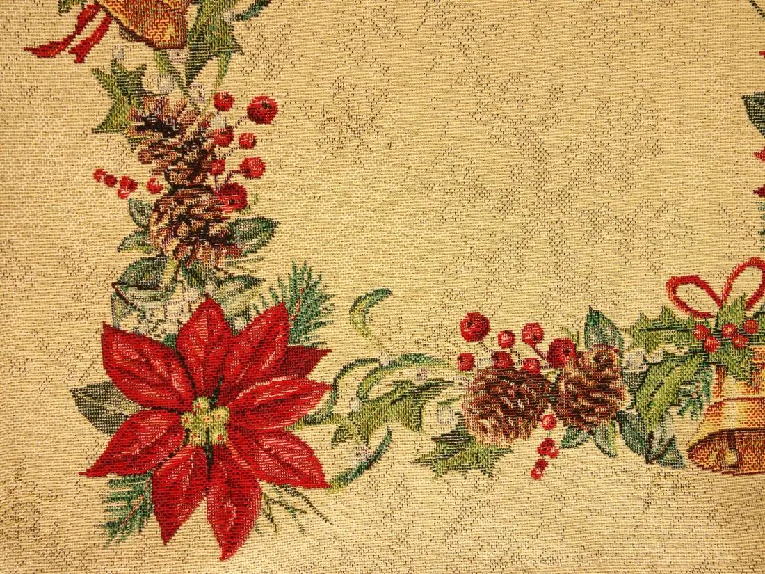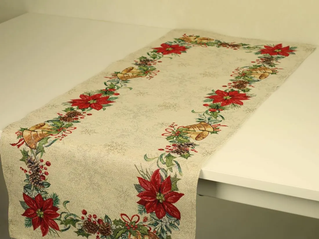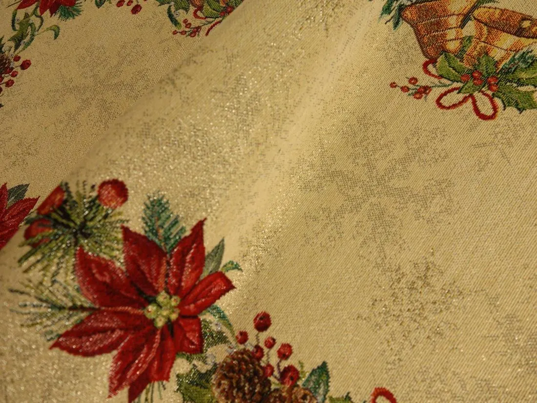 Bieżnik gobelinowy świąteczny 40x100 cm stroik, dzwoneczki wz 296 SlodkieSny srebrna nitka