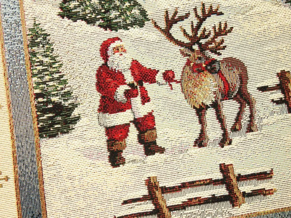 Bieżnik Świąteczny Boże Narodzenie to wyjątkowy dodatek, który nada magicznego uroku każdemu wnętrzu w okresie świątecznym. Wykonany z hiszpańskiej tkaniny o składzie 25% bawełna, 70% poliester i 5% poliakryl, ten obrus charakteryzuje się wysoką jakością i trwałością. Tkanina jest tkana żakardowo, co nadaje jej wyjątkową fakturę i wzornictwo. Niezwykłe wzory użyte na tym bieżniku nawiązują do tradycji gobelinów, które kiedyś ozdabiały ściany w domach. Teraz możesz cieszyć się tymi pięknymi motywami na swoim stole lub komodzie. Nakładka Gobelinowa Świąteczny Boże Narodzenie jest idealny do umieszczenia w salonie lub kuchni, gdzie jego obecność odmieni całe wnętrze i stworzy magiczną atmosferę. Tkanina jest gruba , co sprawia, że jest praktyczna i łatwa w utrzymaniu. Różnorodność wzorów na bieżnikach gobelinowych zaspokoi gust każdego, kto pragnie wprowadzić do swojego domu niepowtarzalny, magiczny, sielski klimat. To doskonałe rozwiązanie, aby odmienić wnętrze na czas świąt, dodając mu wyjątkowego charakteru.