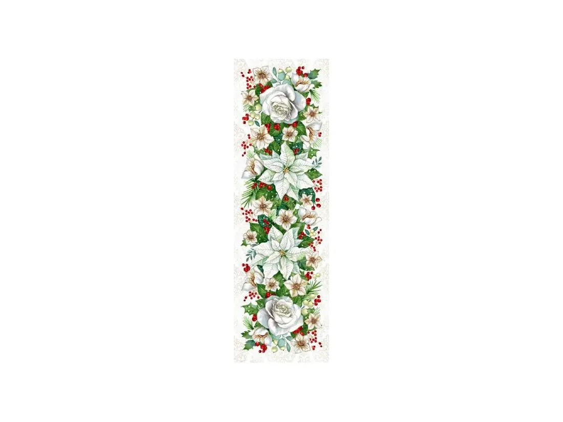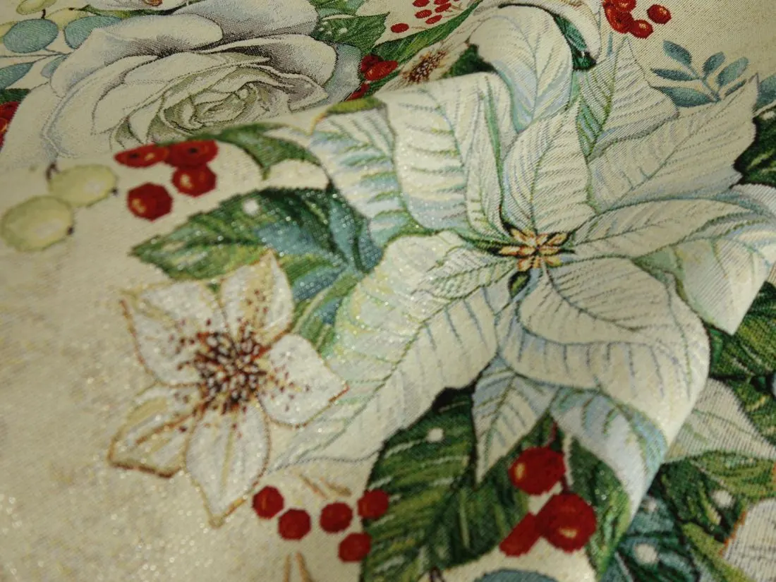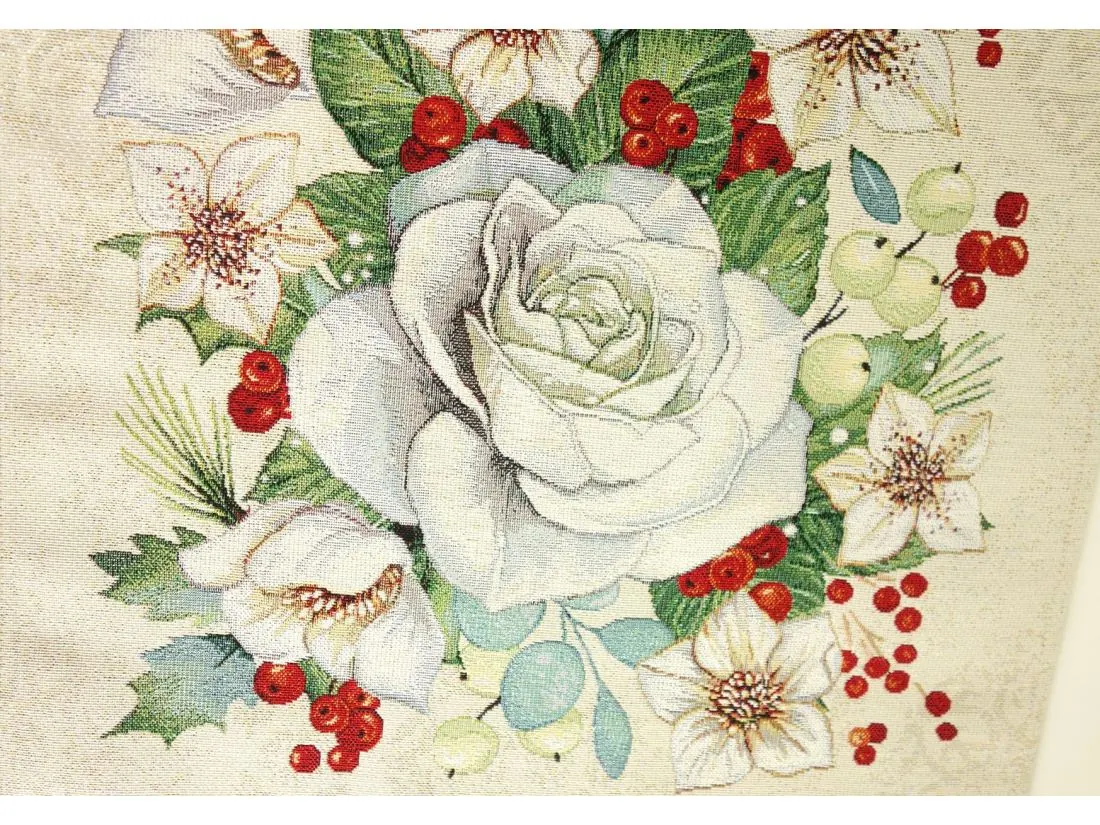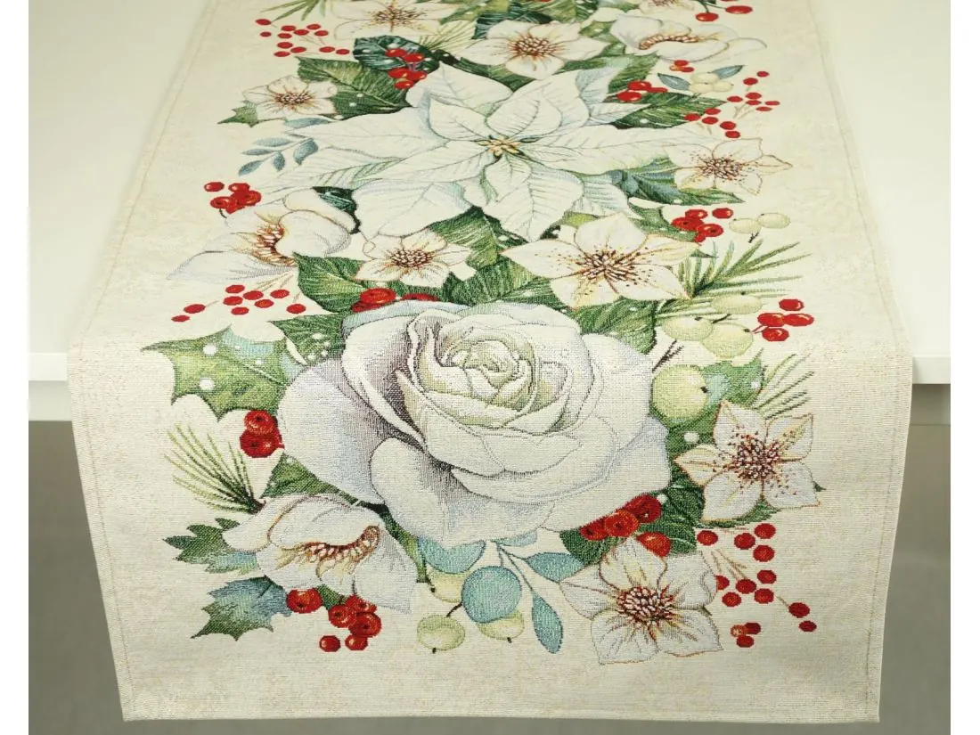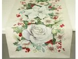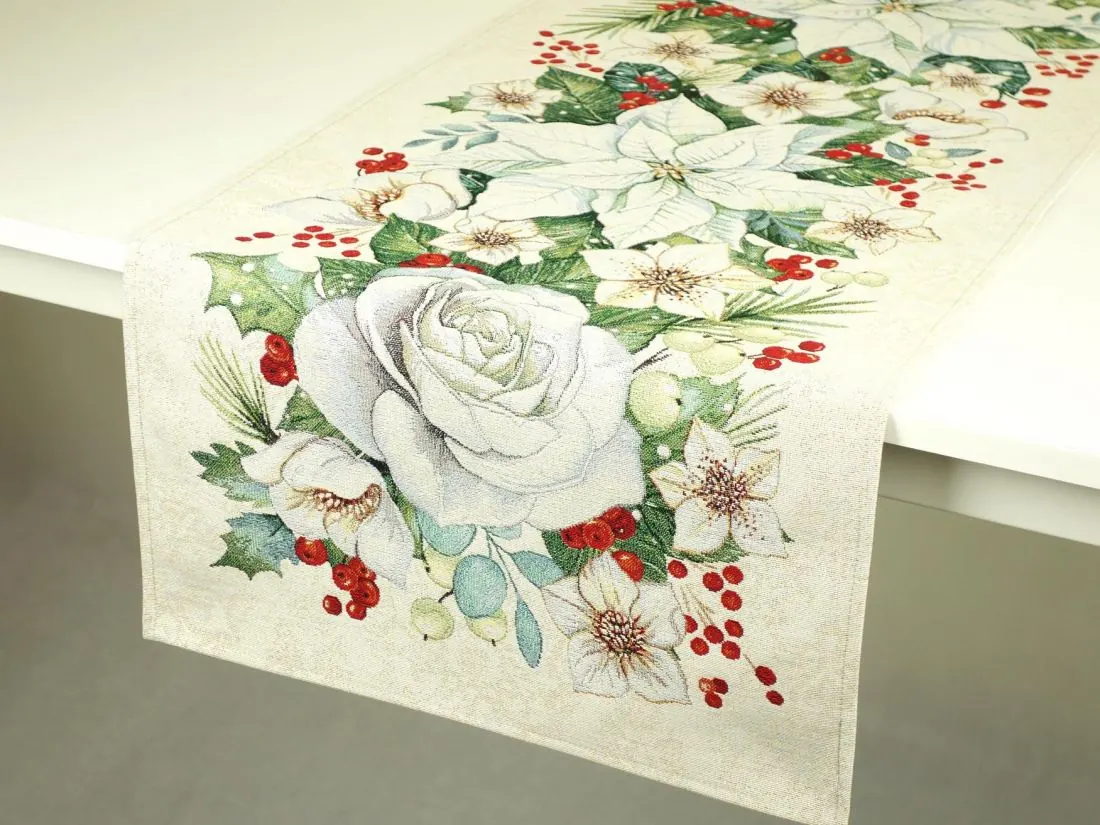 Bieżnik gobelinowy świąteczny 45x140 cm biała róża, biała gwiada betlejemska wz 205 a SlodkieSny