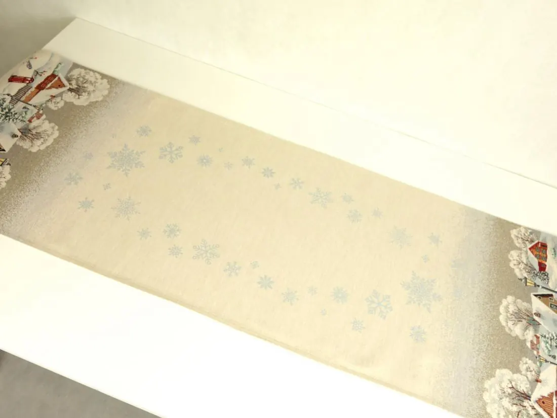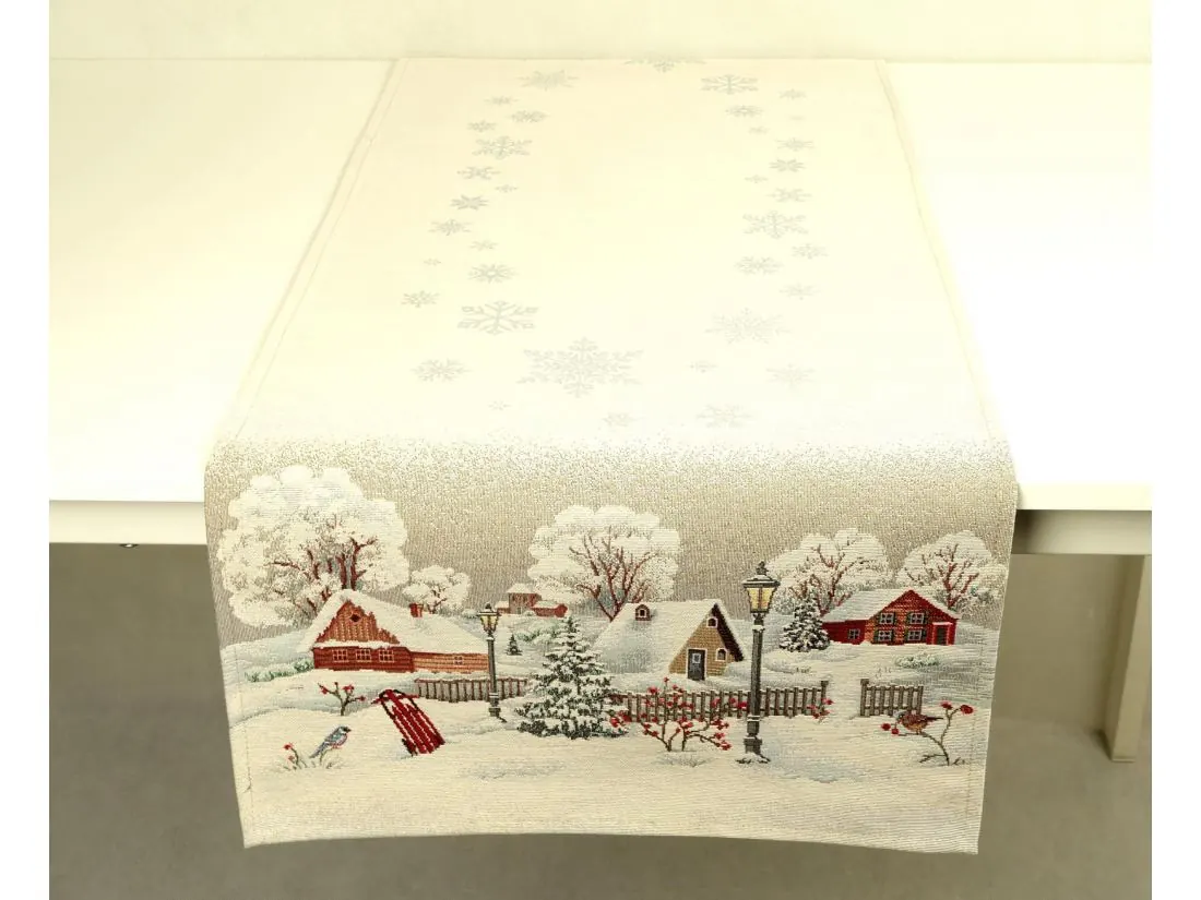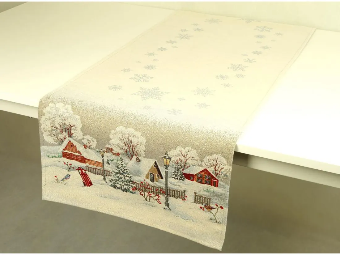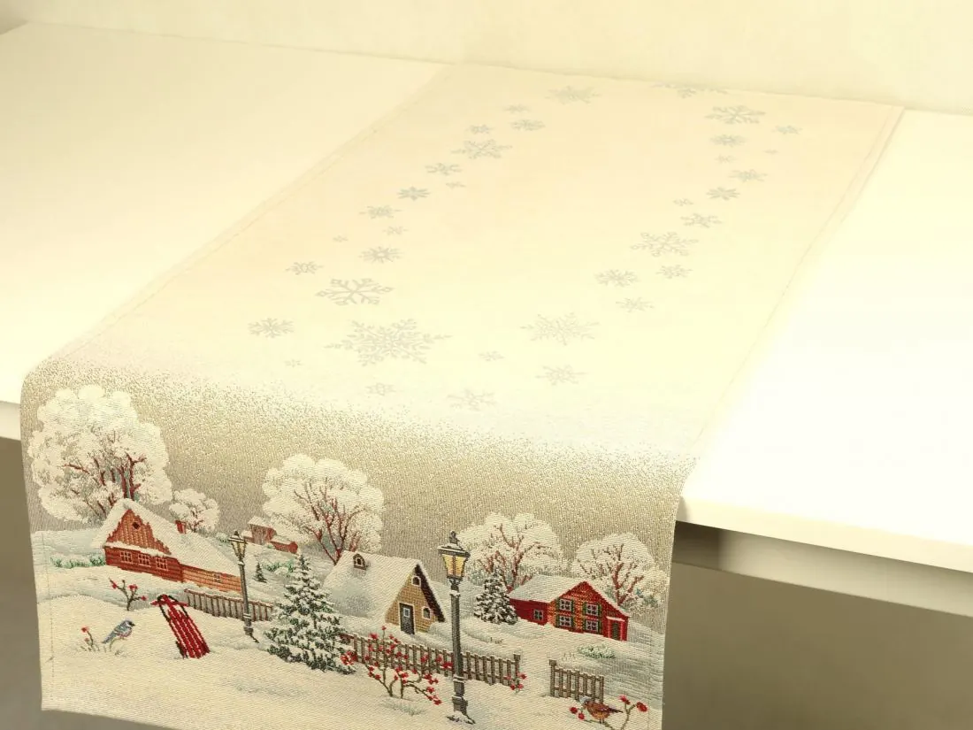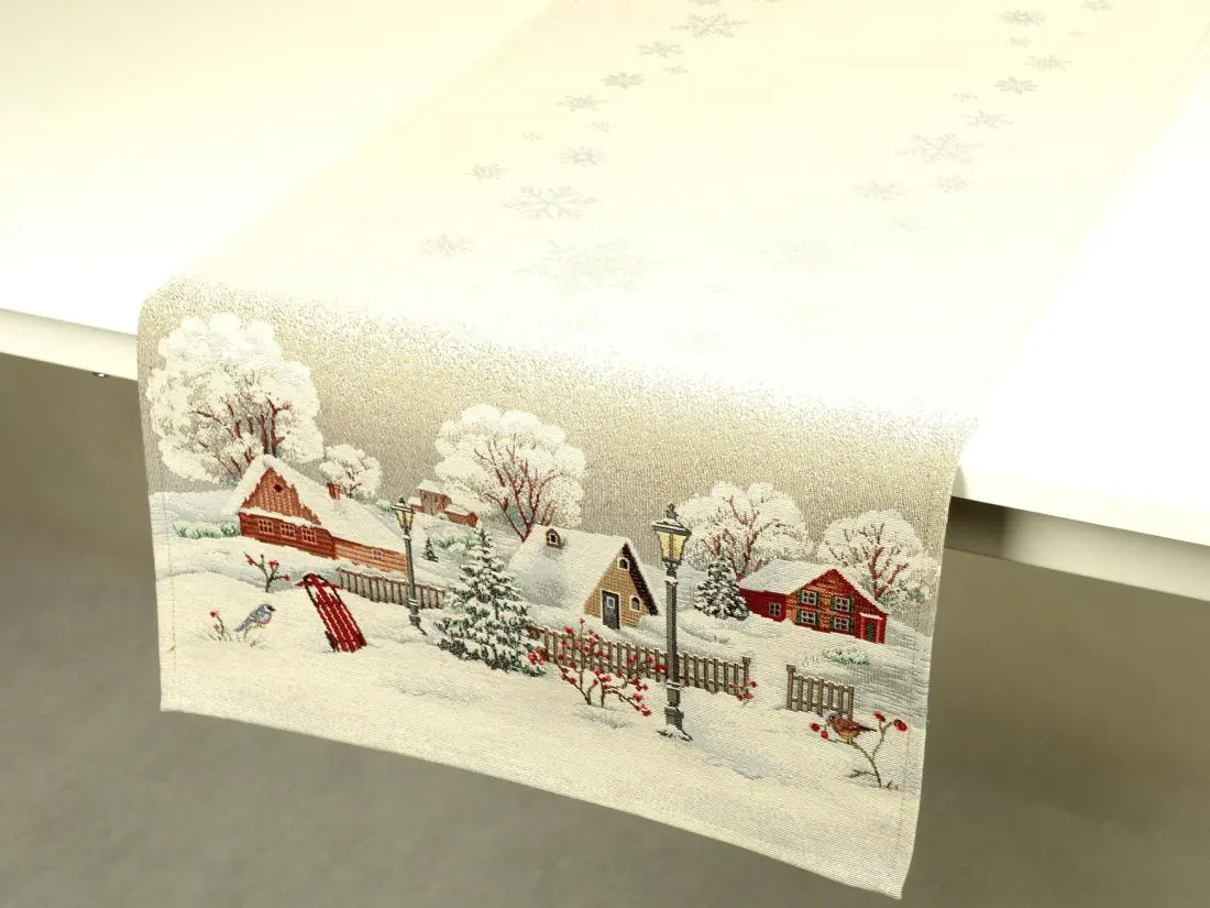Bieżnik gobelinowy świąteczny 45x140 cm chatki, jeleń, sarenka zimą nr sw 287 SlodkieSny