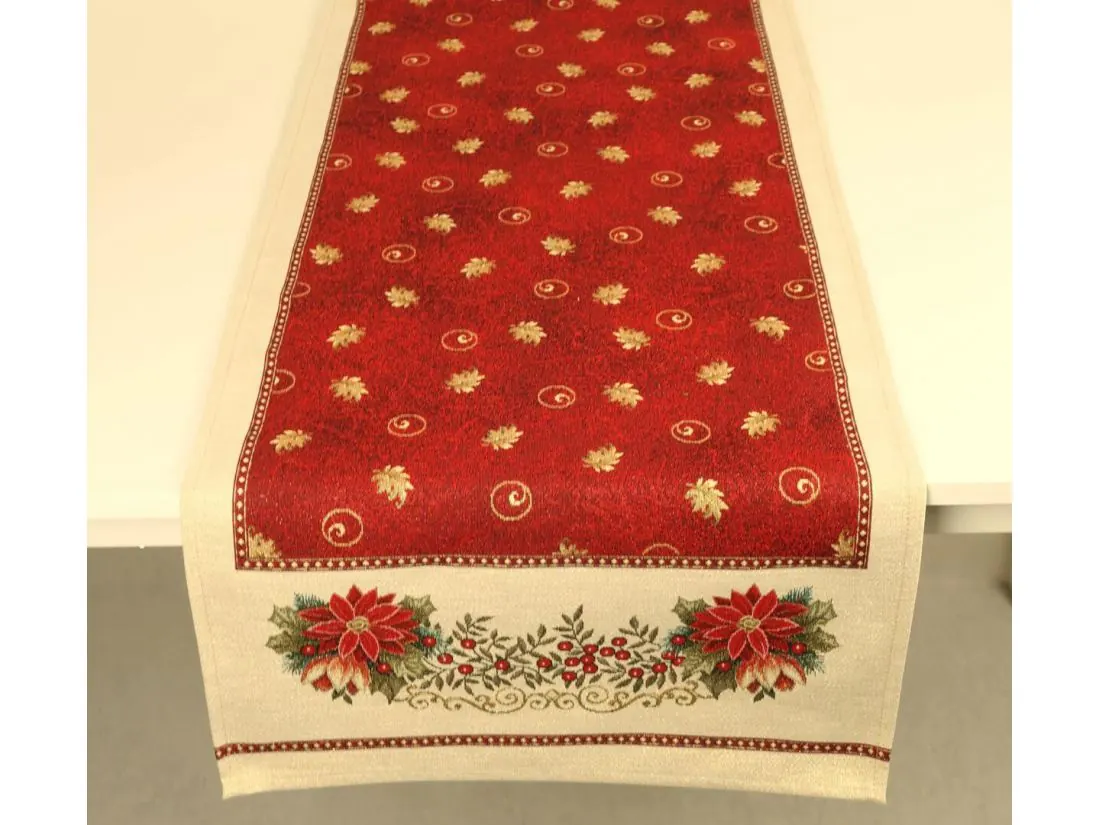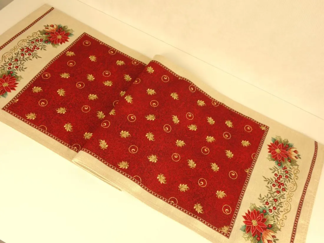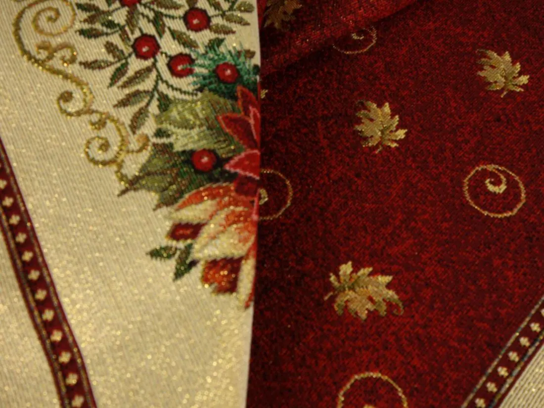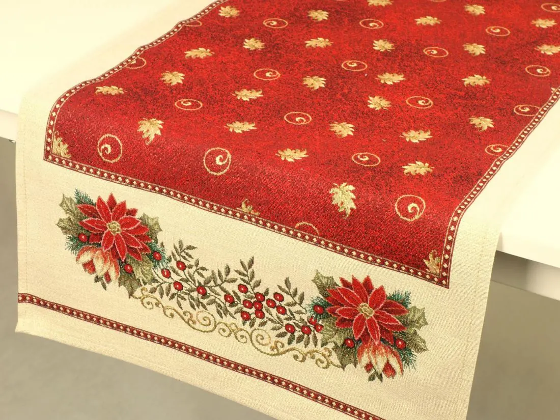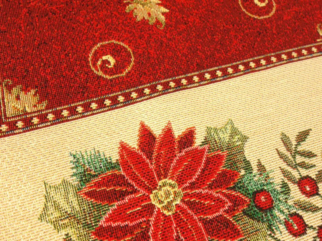 Bieżnik Gobelinowy Świąteczny Boże Narodzenie to wyjątkowy dodatek, który nada magicznego uroku każdemu wnętrzu w okresie świątecznym. Wykonany z hiszpańskiej tkaniny o składzie 25% bawełna, 70% poliester i 5% poliakryl, ten bieżnik charakteryzuje się wysoką jakością i trwałością. Tkanina jest tkana żakardowo, co nadaje jej wyjątkową fakturę i wzornictwo. Dodatkowym atutem poszewki jest złota nitka wpleciona w tkaninę gobelinową.Niezwykłe wzory użyte na tym bieżniku nawiązują do tradycji gobelinów, które kiedyś ozdabiały ściany w domach. Teraz możesz cieszyć się tymi pięknymi motywami na swoim stole lub komodzie. Bieżnik Gobelinowy Świąteczny Boże Narodzenie jest idealny do umieszczenia w salonie lub kuchni, gdzie jego obecność odmieni całe wnętrze i stworzy magiczną atmosferę.Tkanina jest gruba , co sprawia, że jest praktyczna i łatwa w utrzymaniu. Różnorodność wzorów na bieżnikach gobelinowych zaspokoi gust każdego, kto pragnie wprowadzić do swojego domu niepowtarzalny, magiczny, sielski klimat. To doskonałe rozwiązanie, aby odmienić wnętrze na czas świąt, dodając mu wyjątkowego charakteru.