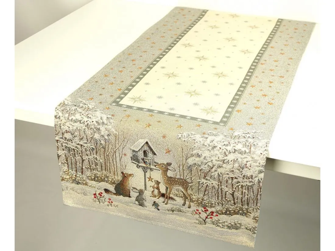 Bieżnik gobelinowy świąteczny 45x140 cm sarenka, lisek, zajączek wz 235 SlodkieSny