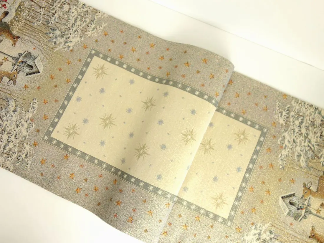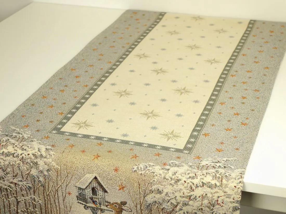 Bieżnik Gobelinowy Świąteczny Boże Narodzenie to wyjątkowy dodatek, który nada magicznego uroku każdemu wnętrzu w okresie świątecznym. Wykonany z hiszpańskiej tkaniny o składzie 25% bawełna, 70% poliester i 5% poliakryl, ten bieżnik charakteryzuje się wysoką jakością i trwałością. Tkanina jest tkana żakardowo, co nadaje jej wyjątkową fakturę i wzornictwo. Dodatkowym atutem poszewki jest srebrna nitka wpleciona w tkaninę gobelinową.Niezwykłe wzory użyte na tym bieżniku nawiązują do tradycji gobelinów, które kiedyś ozdabiały ściany w domach. Teraz możesz cieszyć się tymi pięknymi motywami na swoim stole lub komodzie. Bieżnik Gobelinowy Świąteczny Boże Narodzenie jest idealny do umieszczenia w salonie lub kuchni, gdzie jego obecność odmieni całe wnętrze i stworzy magiczną atmosferę.Tkanina jest gruba , co sprawia, że jest praktyczna i łatwa w utrzymaniu. Różnorodność wzorów na bieżnikach gobelinowych zaspokoi gust każdego, kto pragnie wprowadzić do swojego domu niepowtarzalny, magiczny, sielski klimat. To doskonałe rozwiązanie, aby odmienić wnętrze na czas świąt, dodając mu wyjątkowego charakteru.