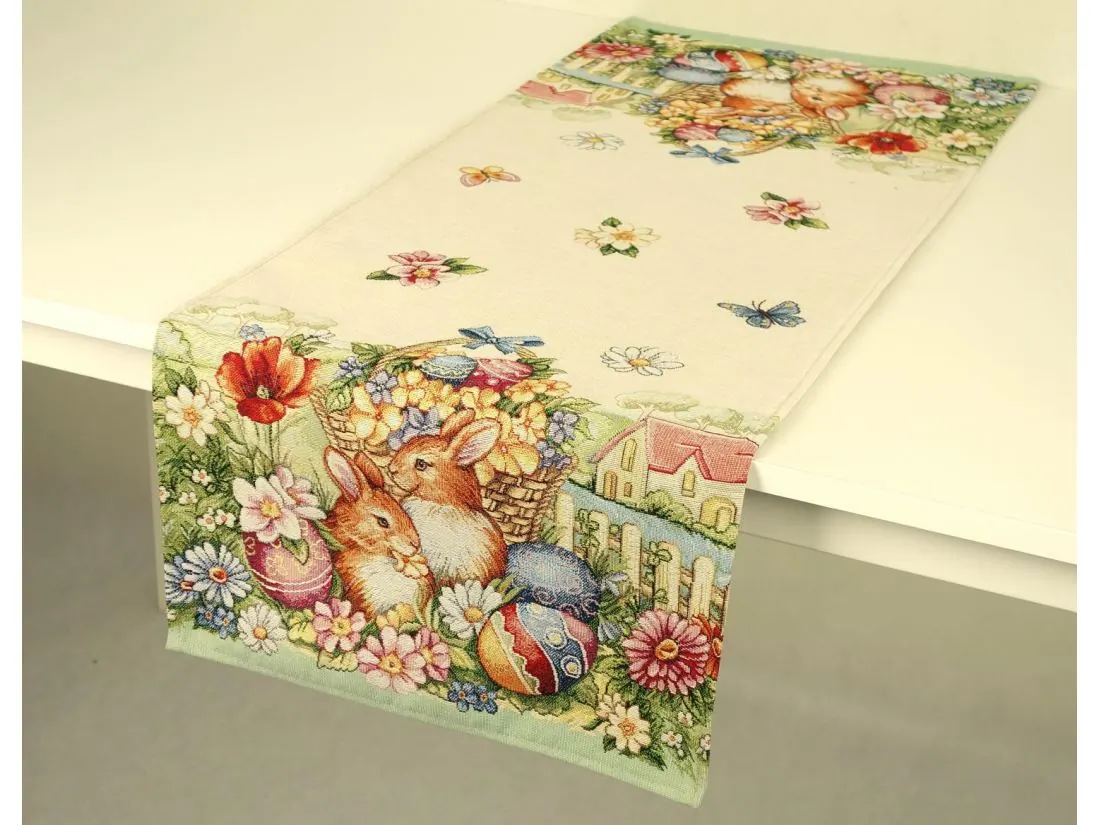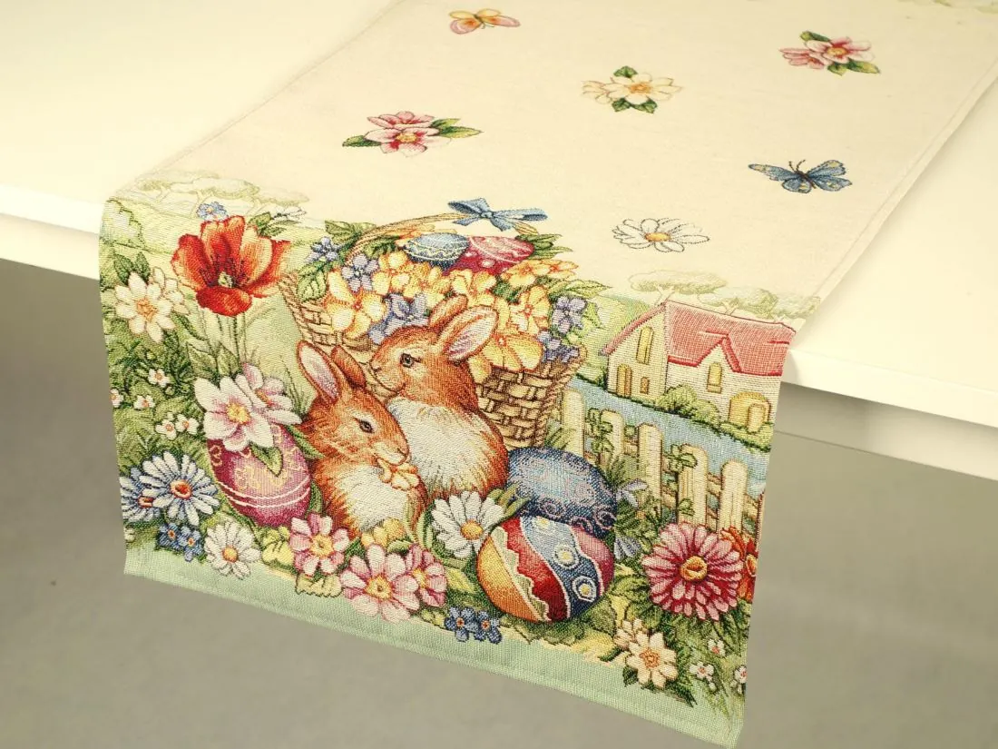 Bieżnik gobelinowy wielkanocny 40x100 cm dwa zajączki z pisankami wz 316 SlodkieSny