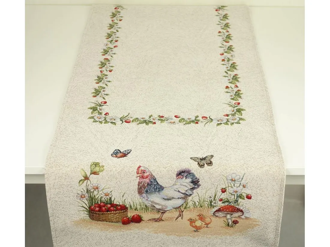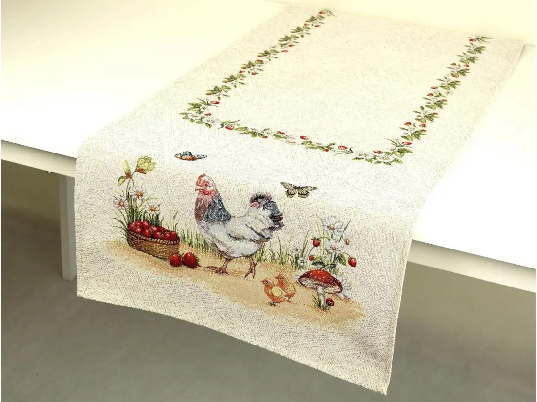 Bieżnik gobelinowy wielkanocny 45x140 cm kurnik SlodkieSny kurka, kurczątka