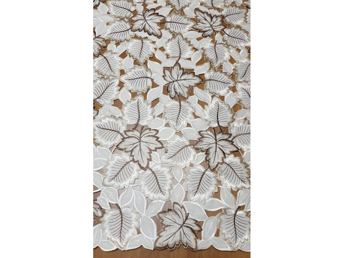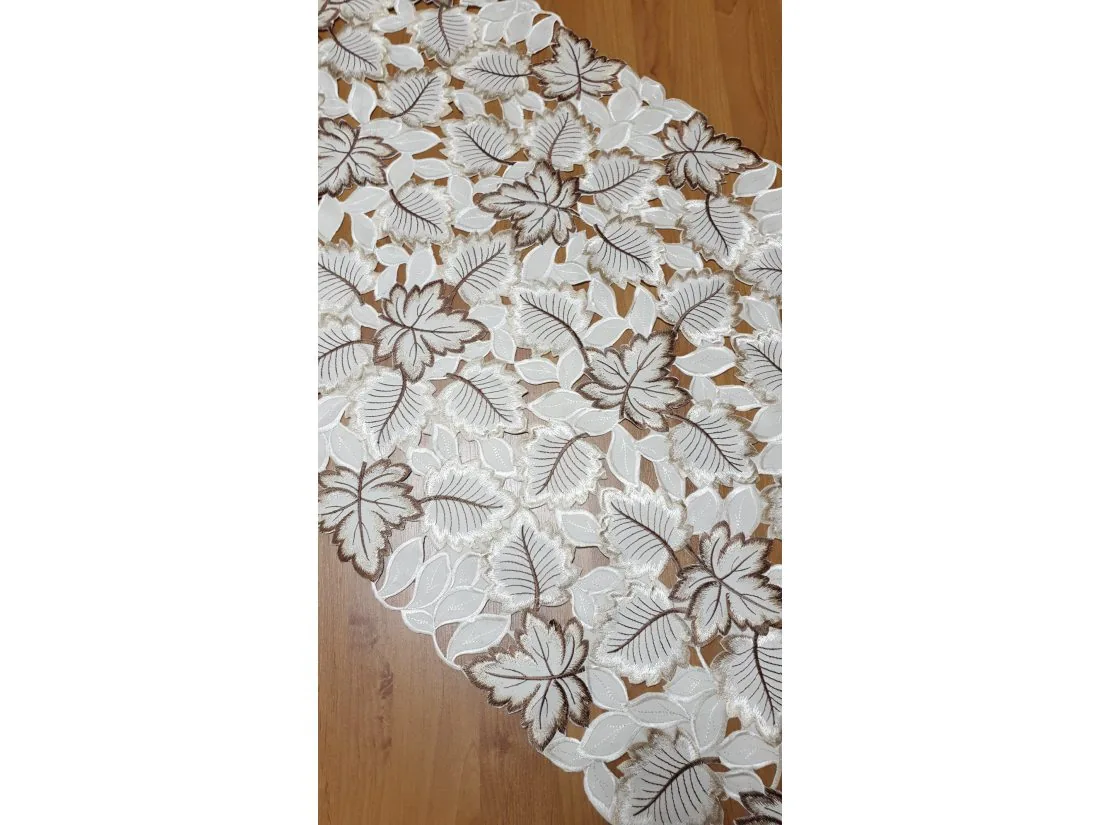 Haftowany bieżnik beżowe listki w rozmiarze 60x120 cm w kolorze kremowym z wyhaftowanymi listkami.